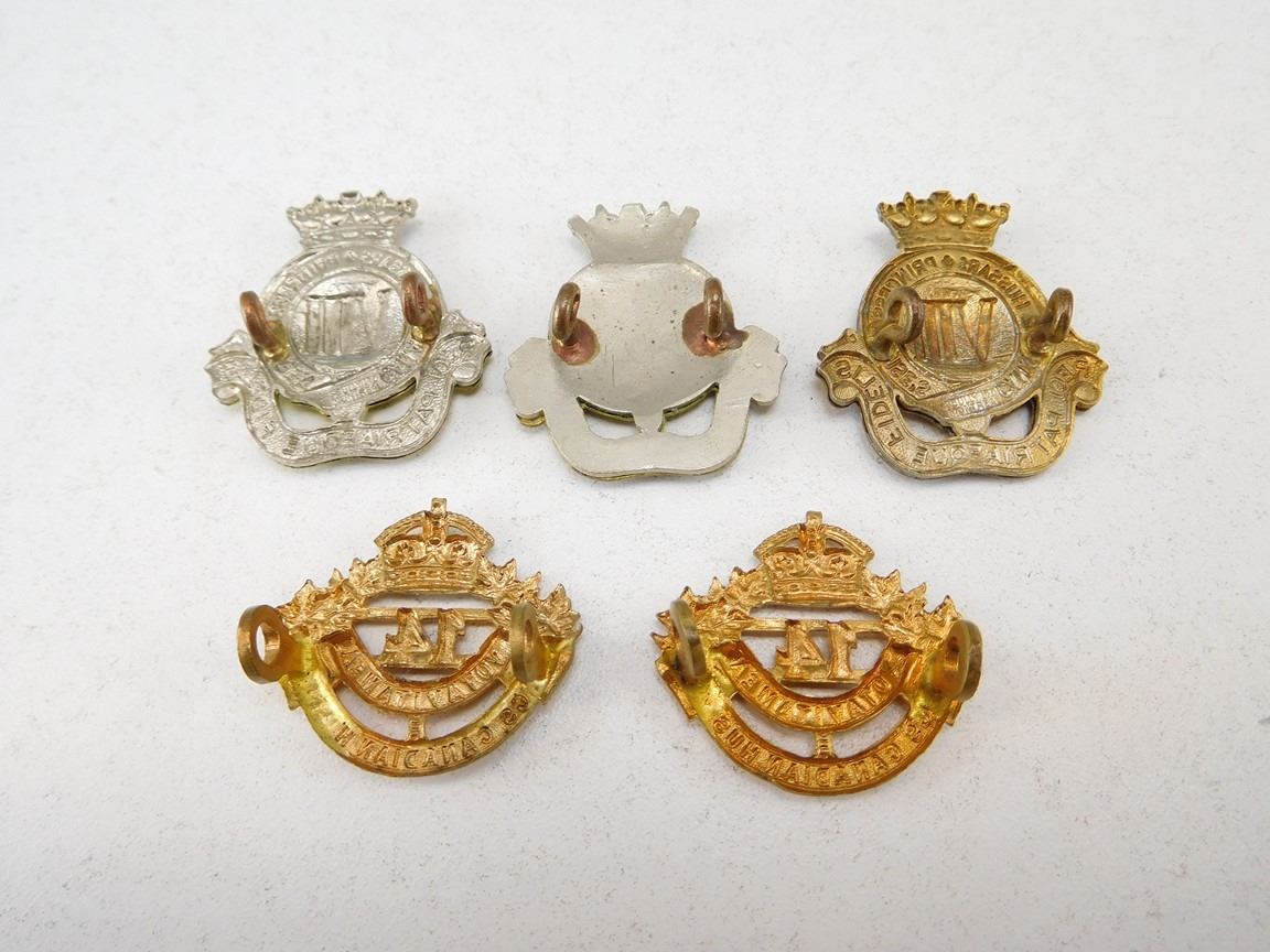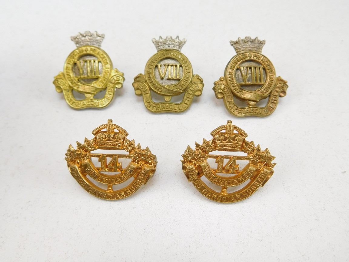 (3) PRINCESS LOUISE'S, (2) 14TH KINGS CANADIAN HUSSARS, LUG BACK NO PINS, LOT OF 5