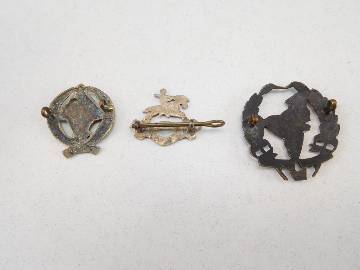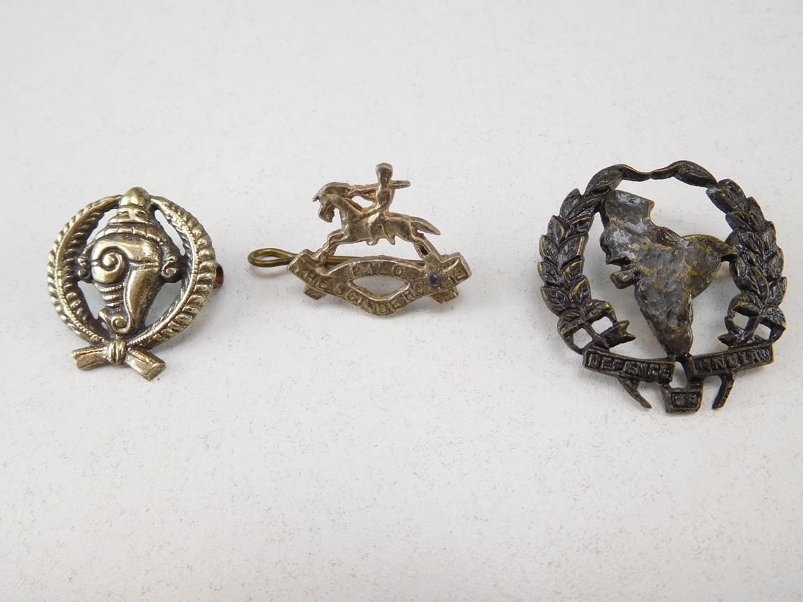 (1) ROYAL INDIAN ARMY: 14TH PRINCE OF WALES OWN CAVALRY LUG BACK WITH PIN, (1) DEFENCE OF INDIA LUG BACK NO PIN, LOT OF 3