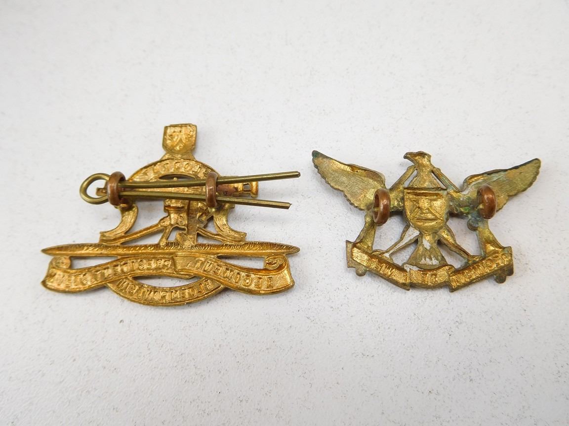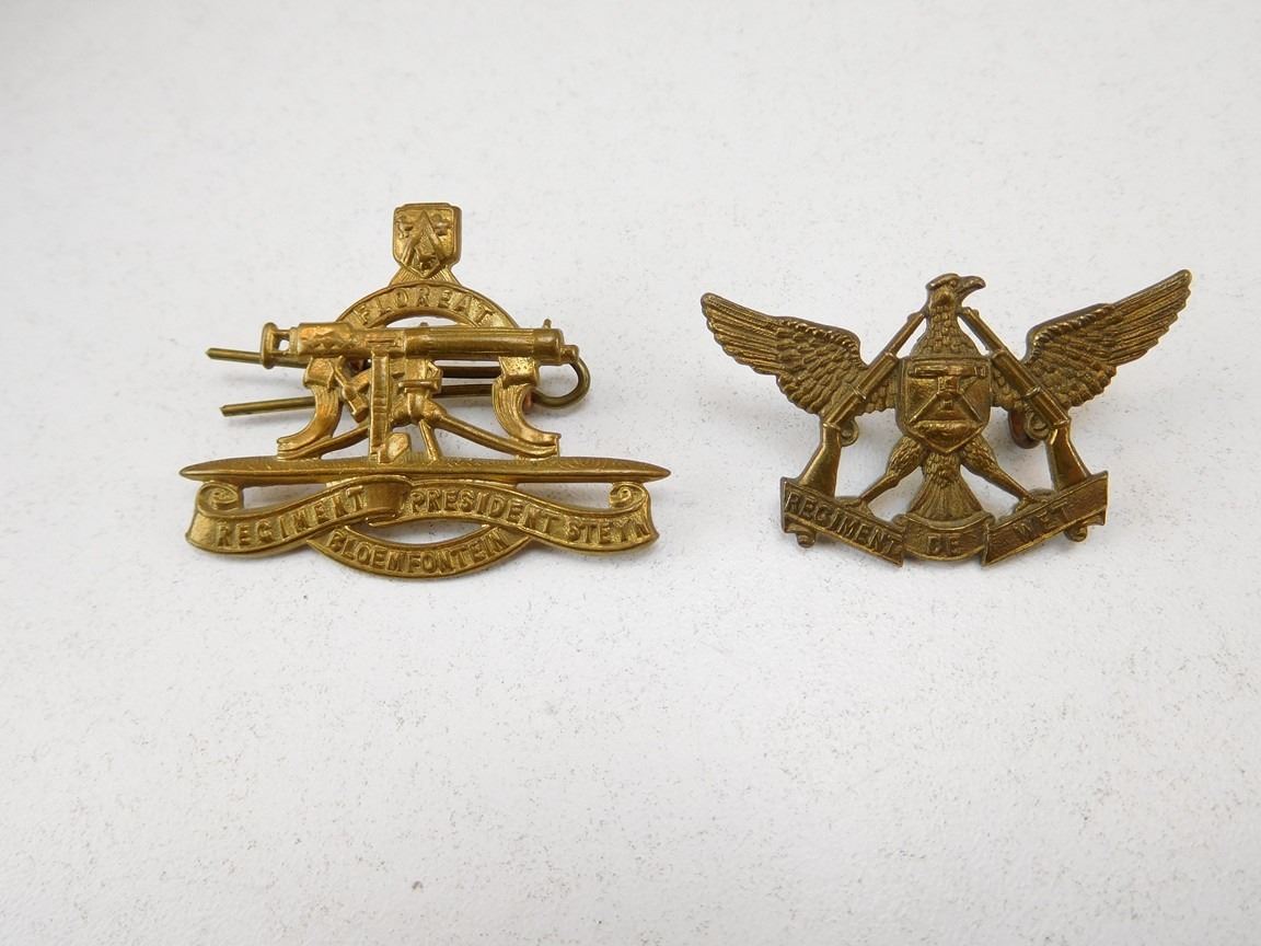 (1) FLOREAT REGIMENT PRESIDENT STEYN BLOEMFONTEIN, LUG BACK WITH PIN, (1) REGIMENT DE WET CAP BADGE, LOT OF 2