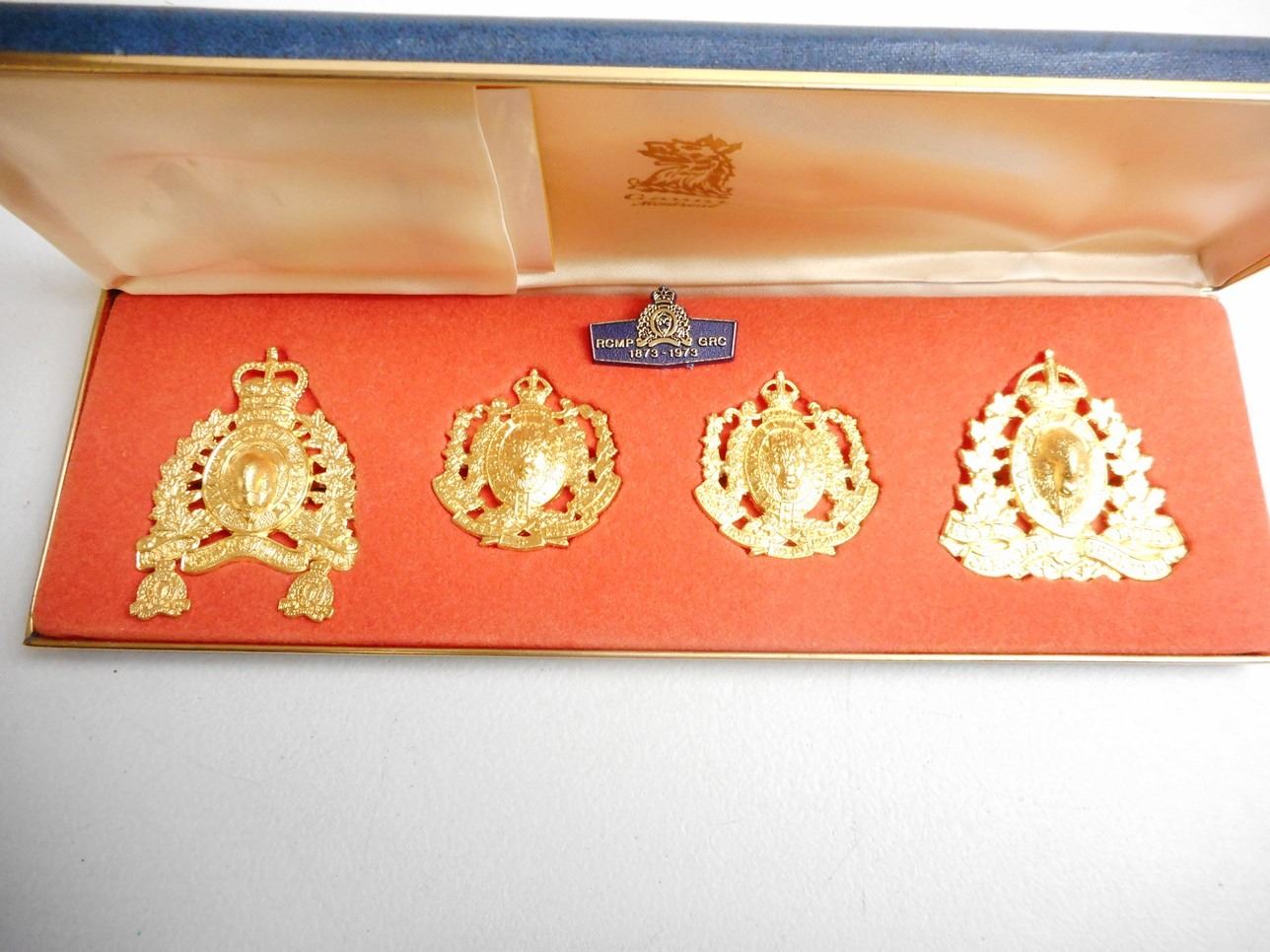 WITH LAPEL BADGES, INCLUDES NORTH WEST MOUNT POLICE, ROYAL NORTH WEST MOUNTED POLICE, AND ROYAL CANADIAN MOUNTED POLICE, IN HARD CASE