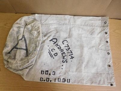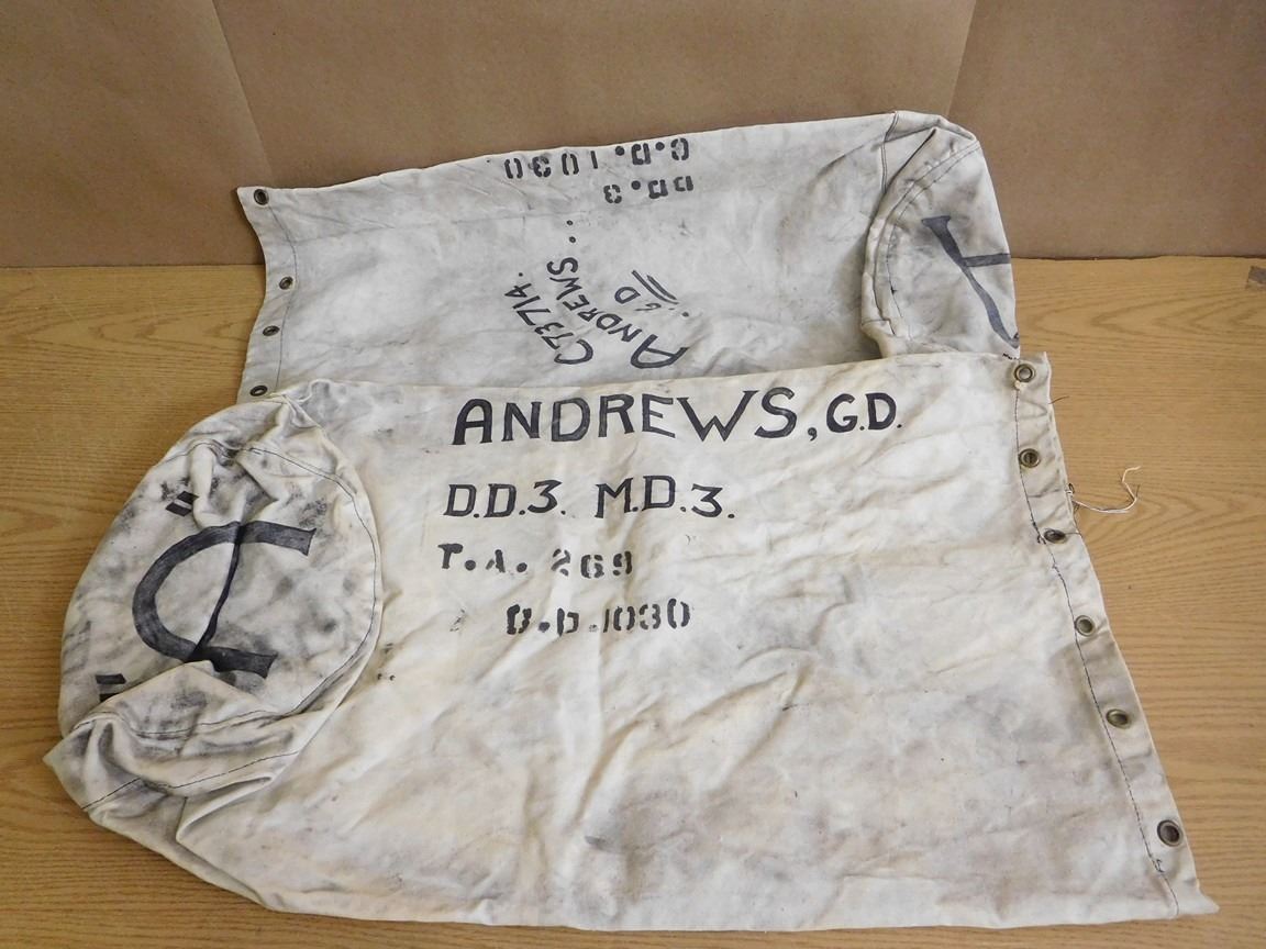 (1) O/C. D.E. SUTTON, R.C.S.C.C. "HALLOWELL", (2) MARKED ANDREWS G.D. C73714, D.D.3, C.D. 1030, WITH A ON BOTTOM, (1) PENNED C 75011, KNIGHT R.M. MD3 , CD 690, ALSO MARKED CD690A MD3. TA237A, (2) LARGE BAGS