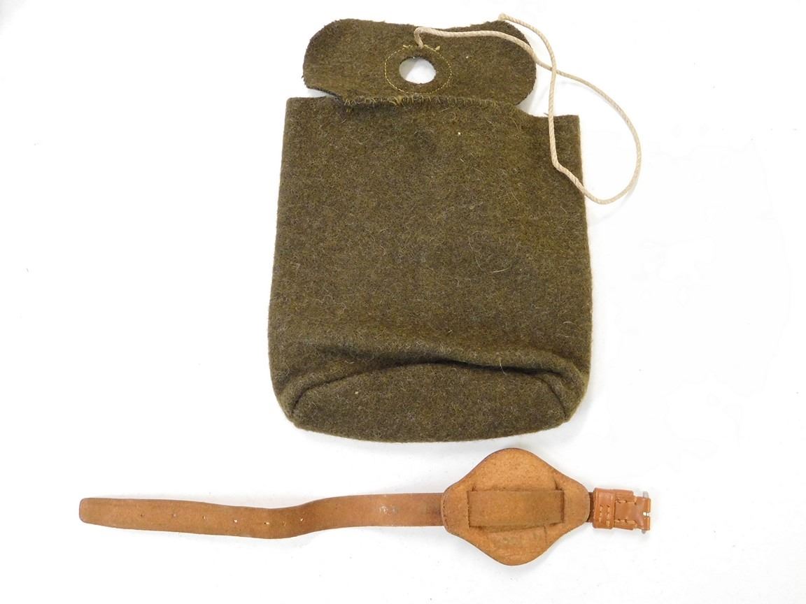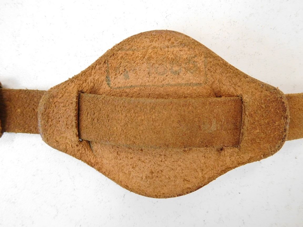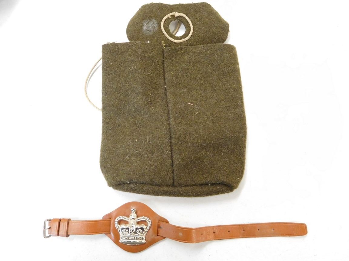 (1) WOOL CASE, CANADIAN BROAD ARROW MARKED, (1) LEATHER ARM BELT WITH CROWN PIN LUGS ARE INTACT, FAINT STAMP ON LEATHER BROAD ARROW MARK AND DATE, LOT OF 2