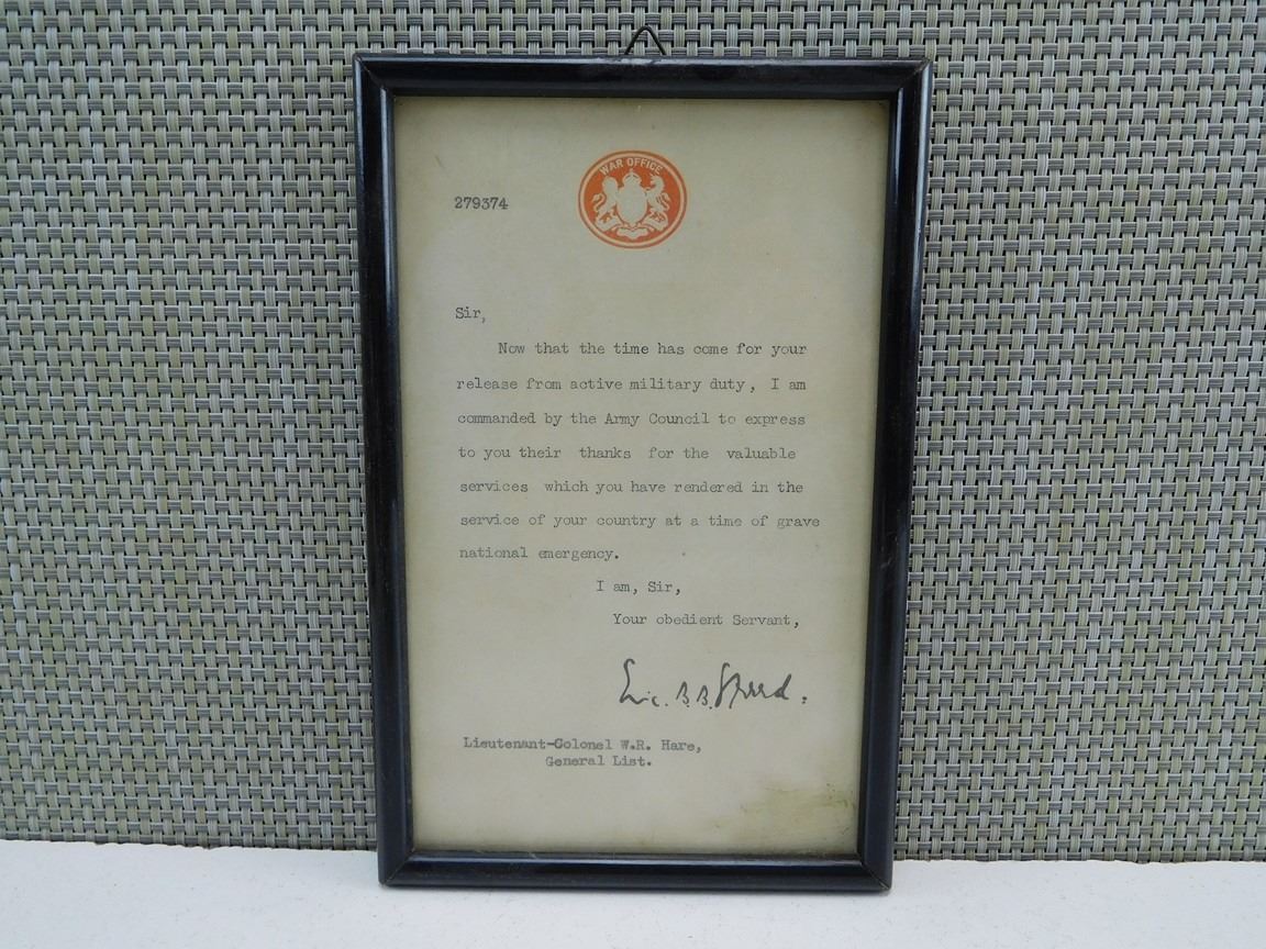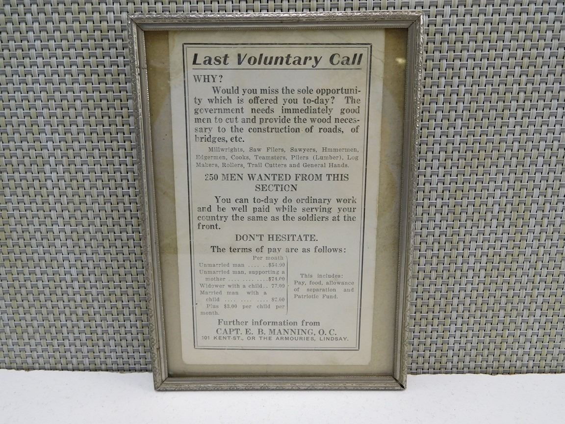 (1) VOLUNTARY LAST CALL, 7 X 5", (1) RELEASE LETTER 8 X 5", BOTH FRAMED WITH GLASS, NOTICE: THERE IS NO GUARANTEE ON GLASS