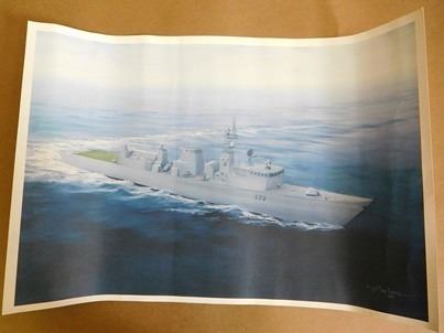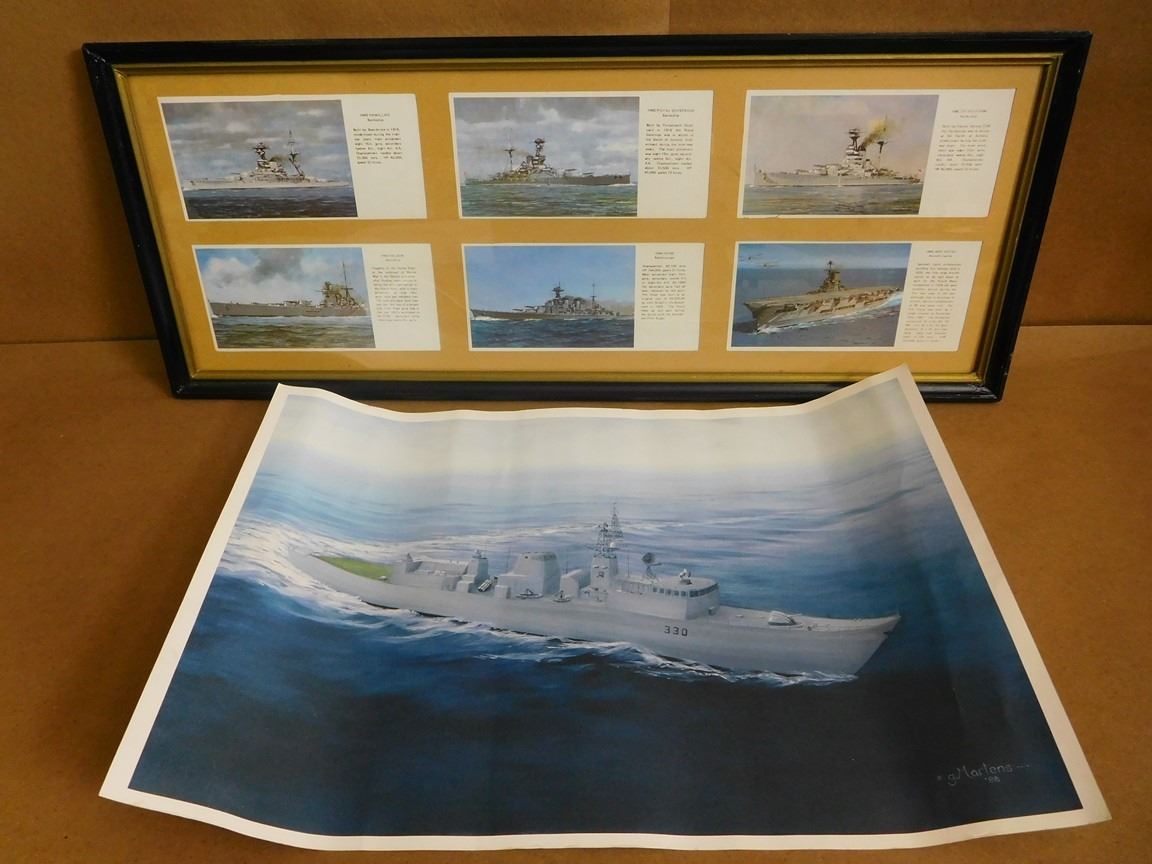 (1) H.M.C.S. VISION PHOTO, 5" X 7", FRAMED WITH GLASS (1) CERTIFICATE, 13" X 10" FRAMED WITH GLASS, (1) PRINT BY ARTIST G. MARTENS '88, 21 X 14.4" UNFRAMED NO GLASS, (1) HMS PRINTS WITH INFORMATION BY RICHARD WARD 28.5 X 11.5" FRAMED WITH GLASS, EACH PICTURE IS 3.5 X 5.5 NOTICE: THERE IS NO GUARANTEE ON GLASS
