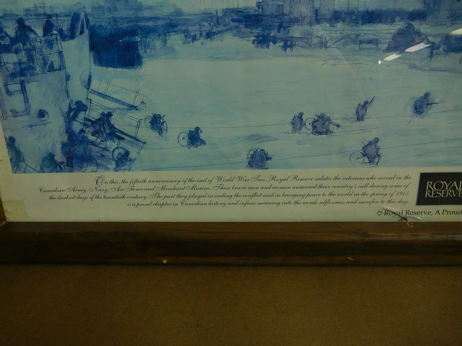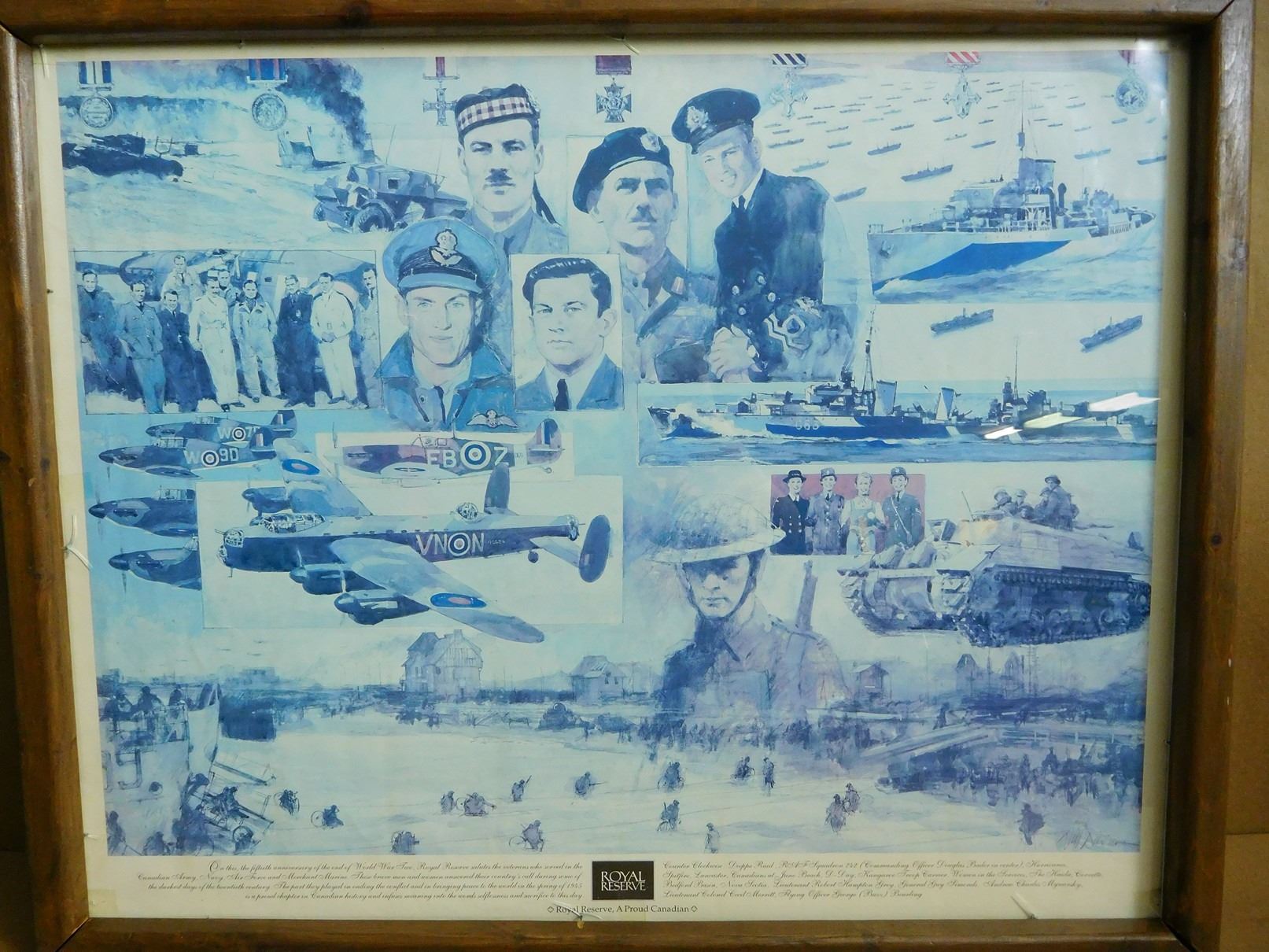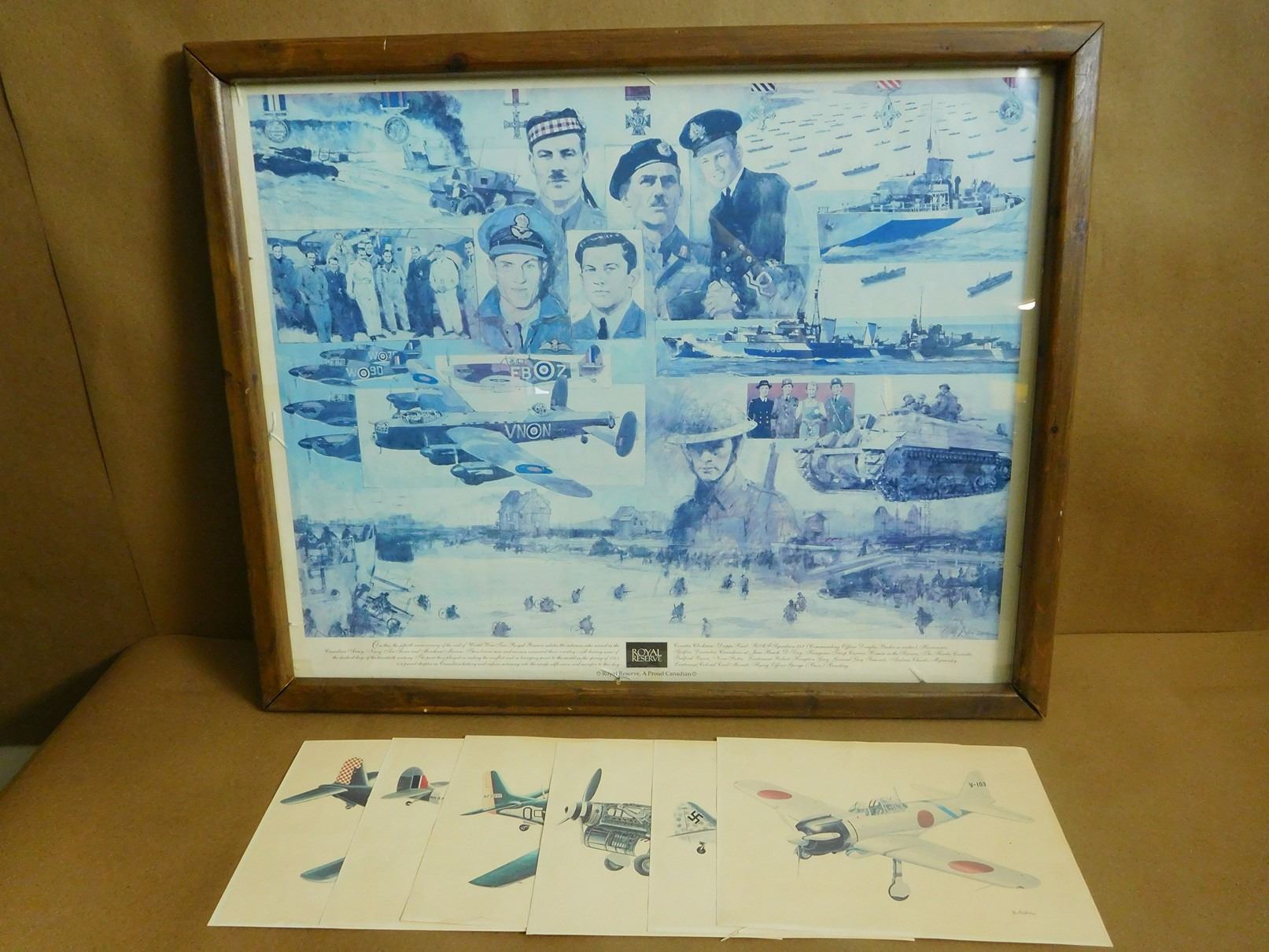 (1) PRINT: 15TH ANNIVERSARY OF THE END OF WWII BY THE ROYAL RESERVE, 32 X 26" WOOD FRAME WITH GLASS, (6) PRINTS, FROM 1979 TIME-LIFE BOOKS INC., 12 X 9", NOTICE: THERE IS NO GUARANTEE ON GLASS