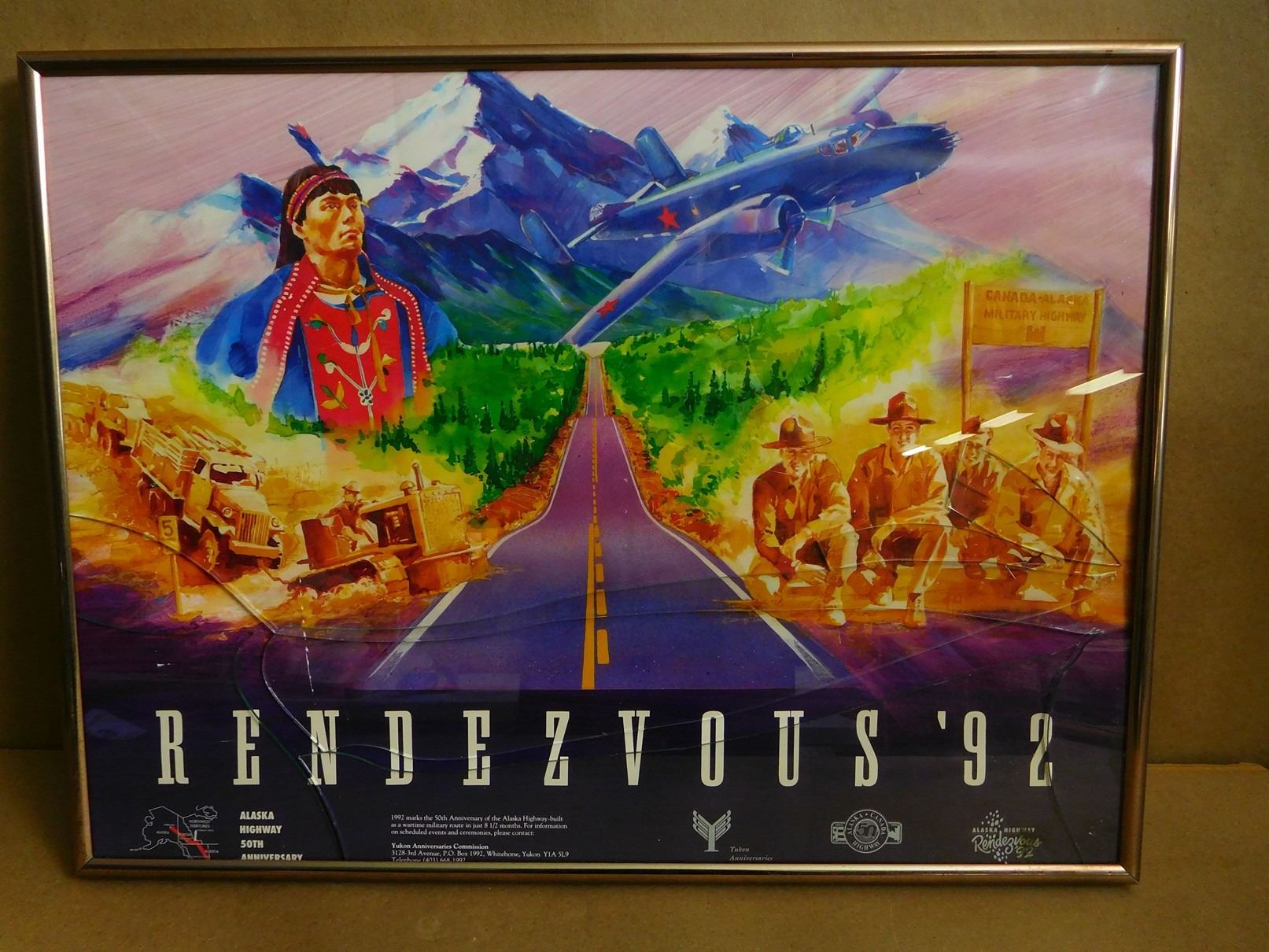 ALASKA HIGHWAY 50TH ANNIVERSARY,19 x 25" FRAMED GLASS IS BROKEN, NOTICE: THERE IS NO GUARANTEE ON GLASS