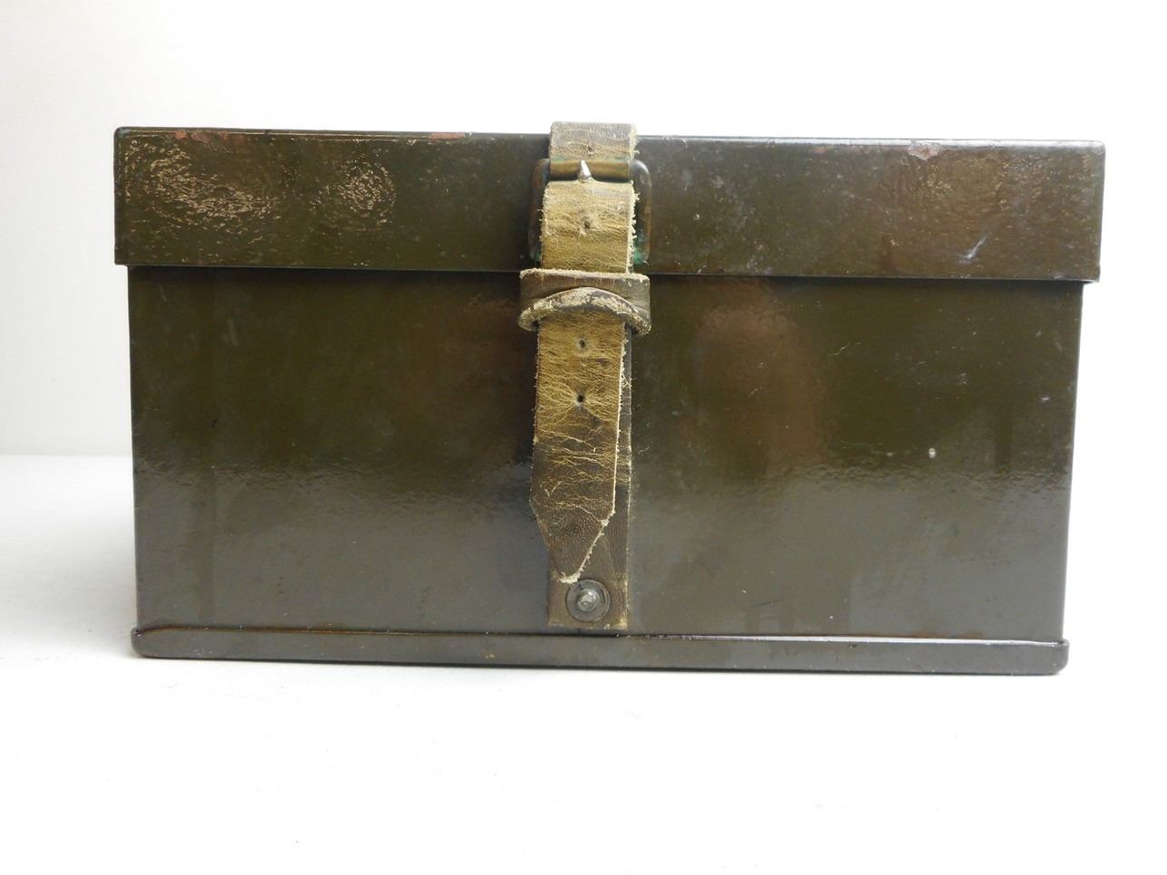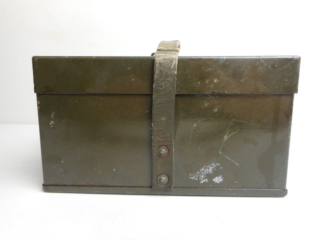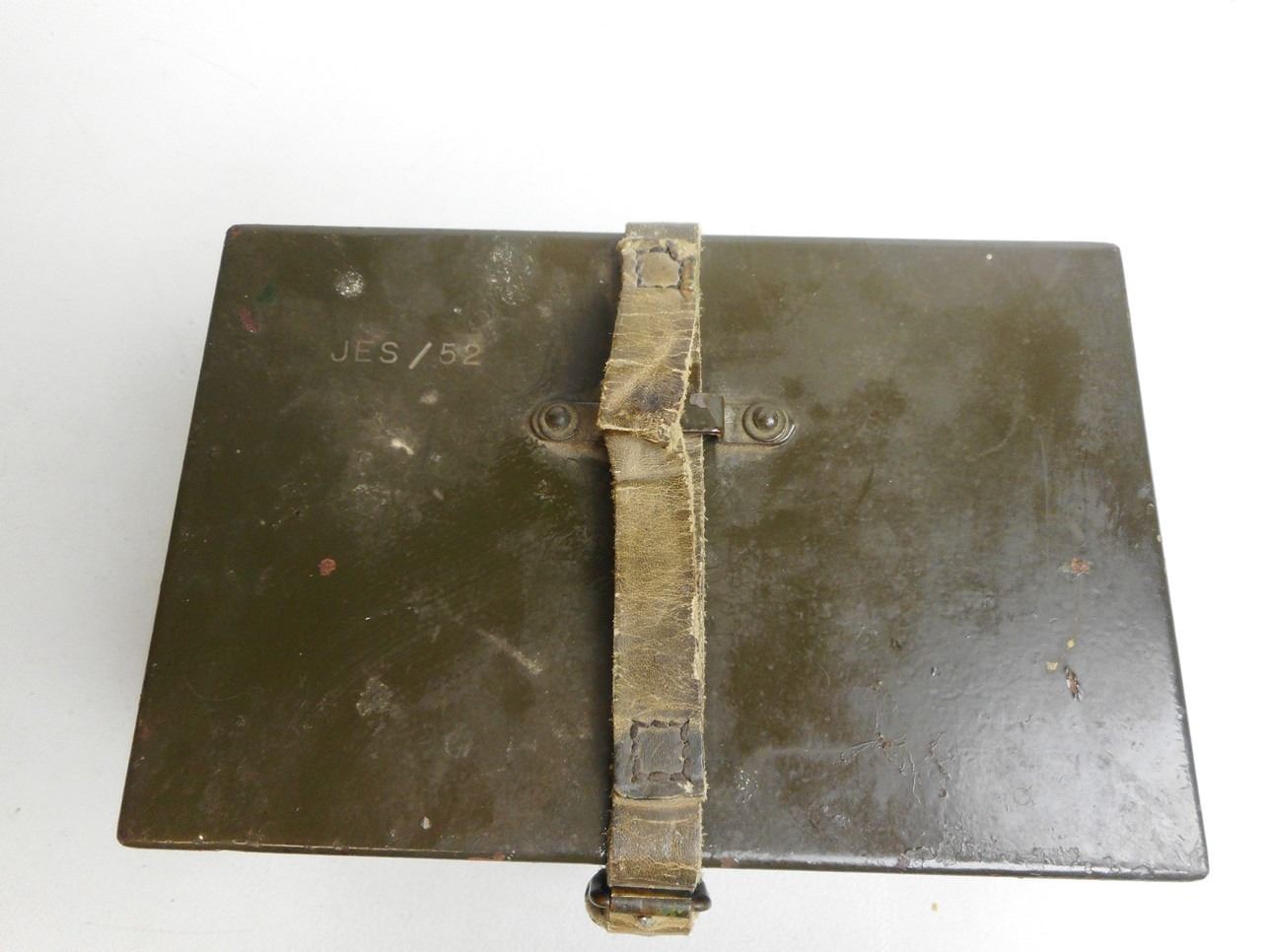 MILITARY COMPONENT CASE WITH LEATHER STRAP MARKED JES/52