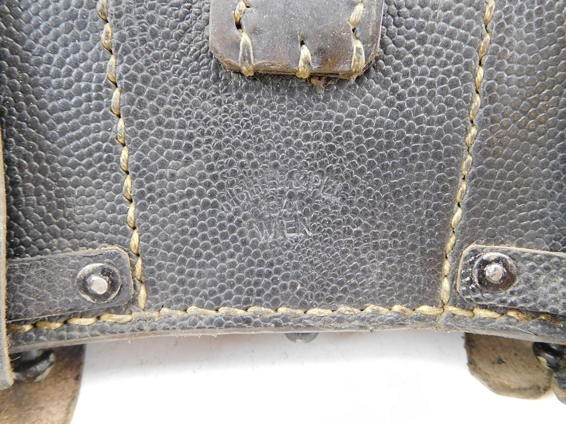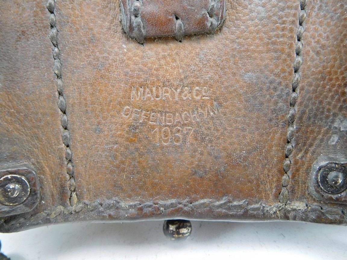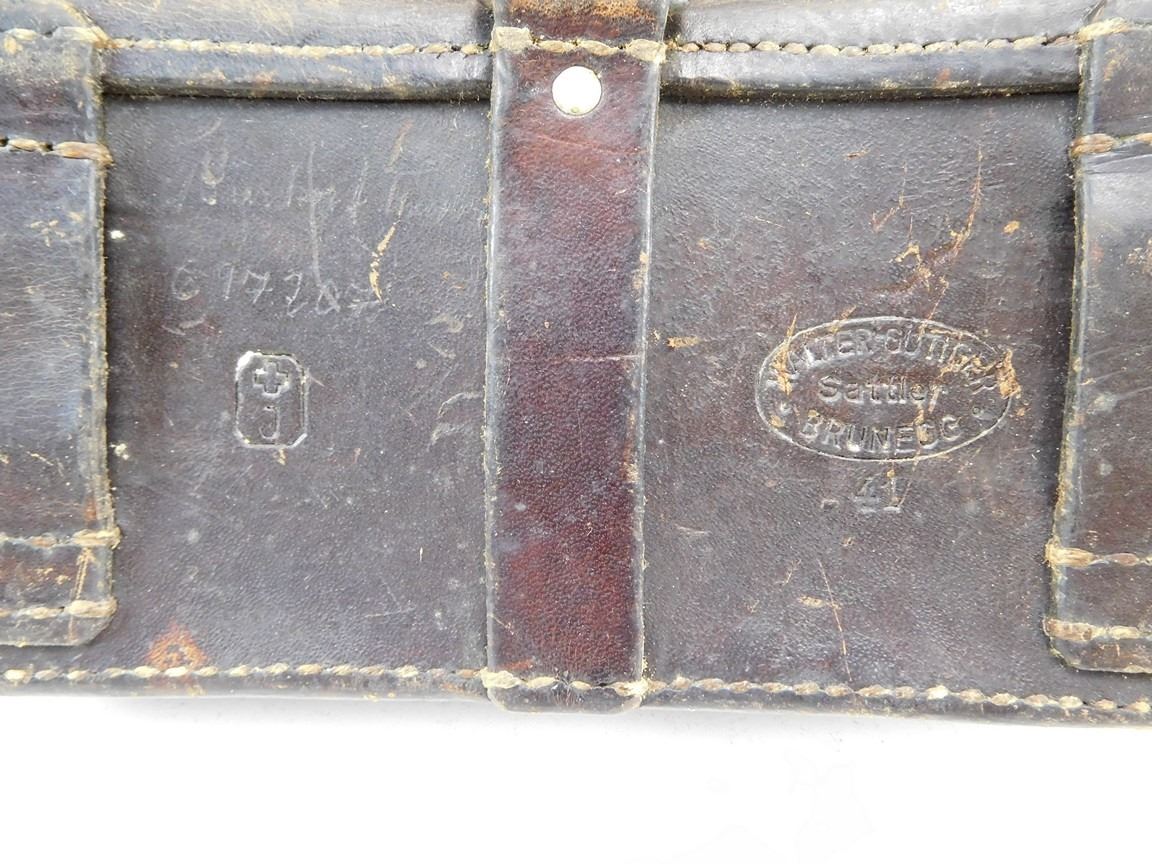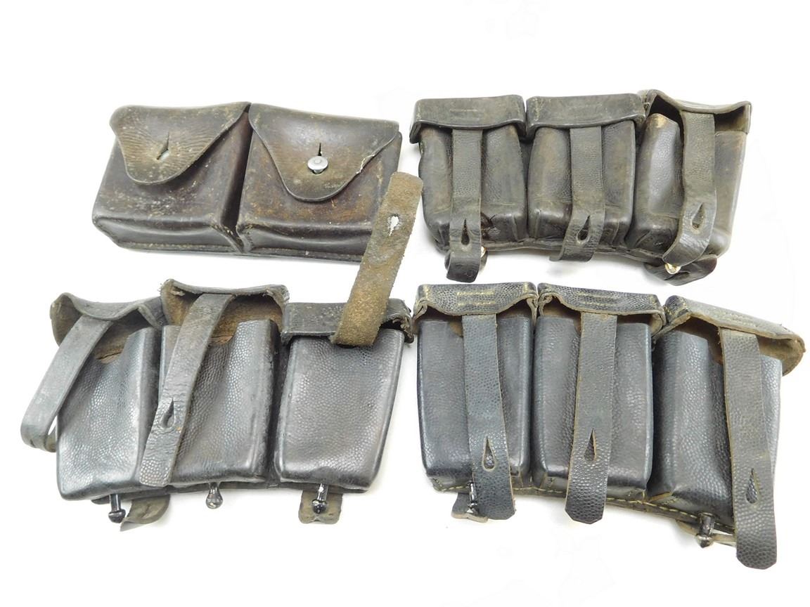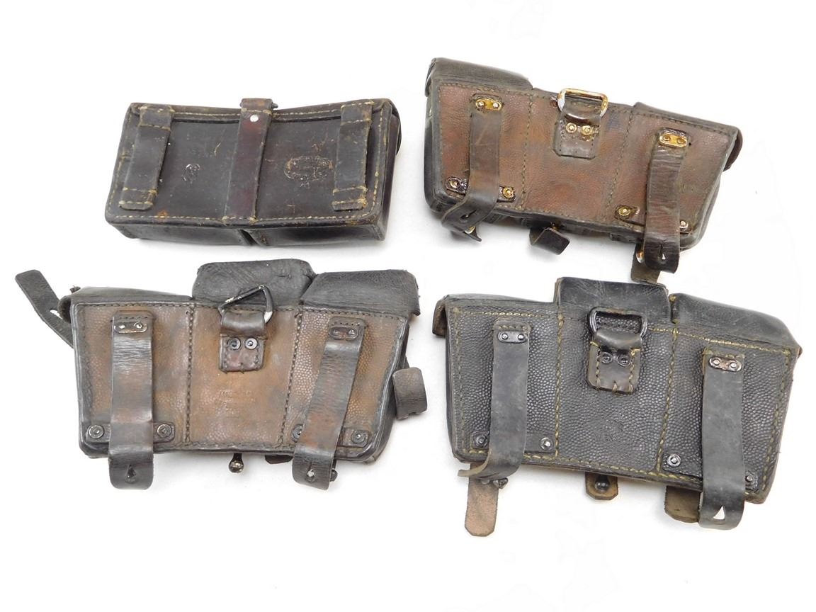 (1) SWISS K31 POUCH, STAMPED WALTER GUTIRER SATTLER BRUNESG 41, (3) GERMAN K98 POUCHES MARKED: MAURY & CO OFFENBACHYM 1937, 1941 WIEN, & 1937, LOT OF 4