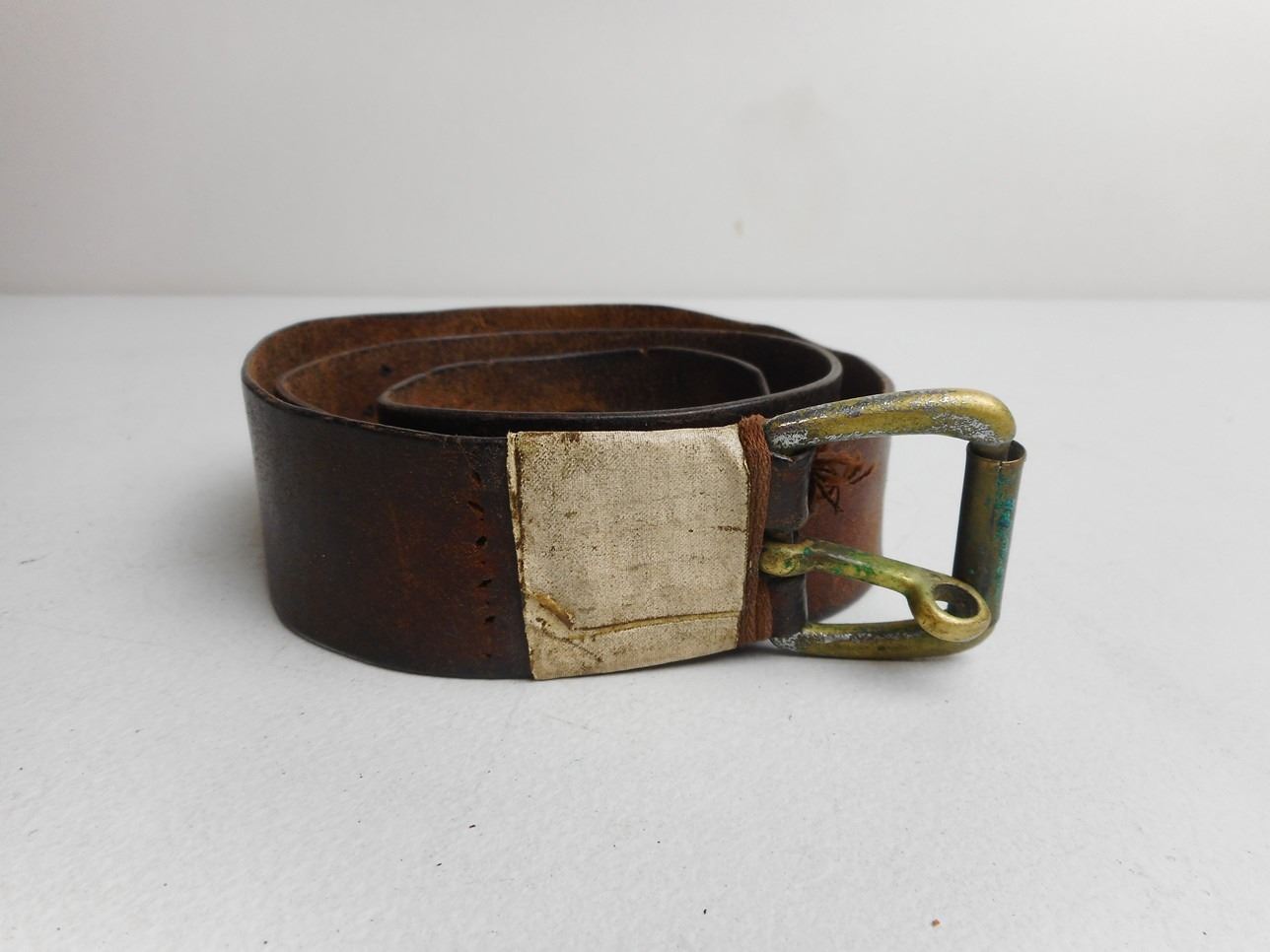VINTAGE LEATHER BELT WITH BRASS BUCKLE
