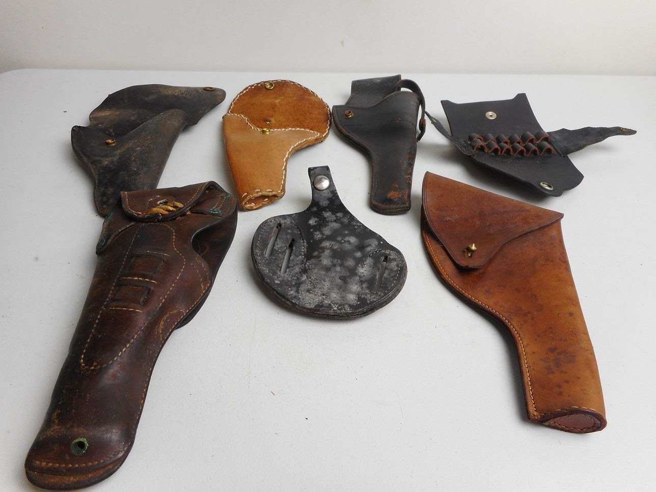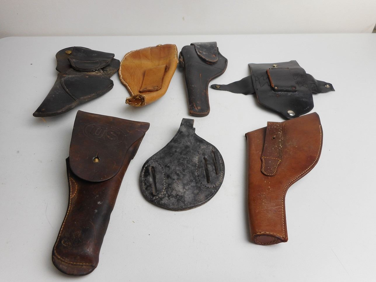 AND 4 HOMEMADE REVOLVER HOLSTERS, (5 HOLSTERS)