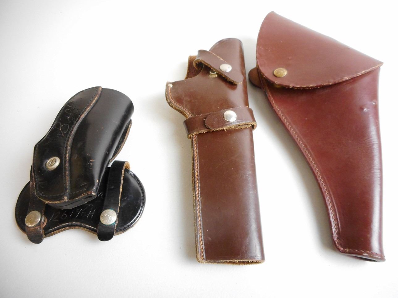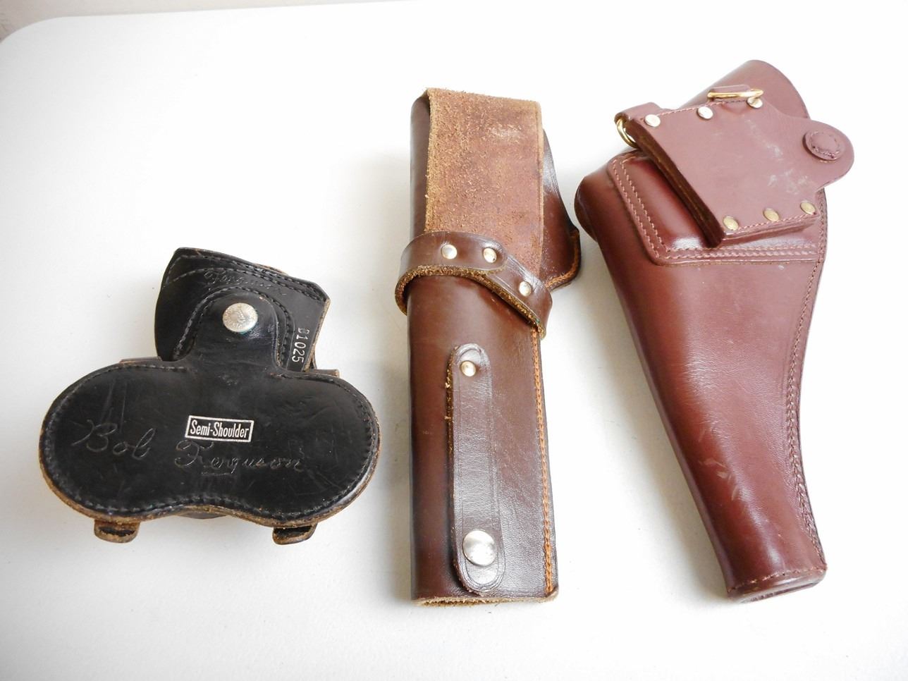 (1) BLACK SEMI-SHOULDER, BUCHEIMER MADE, (2) 2 BROWN, LOT OF 3