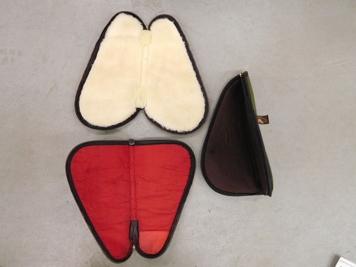 LOT OF 3 (1) BLACK VINYL PADDED CASE (2) FABRIC PADDED GREEN