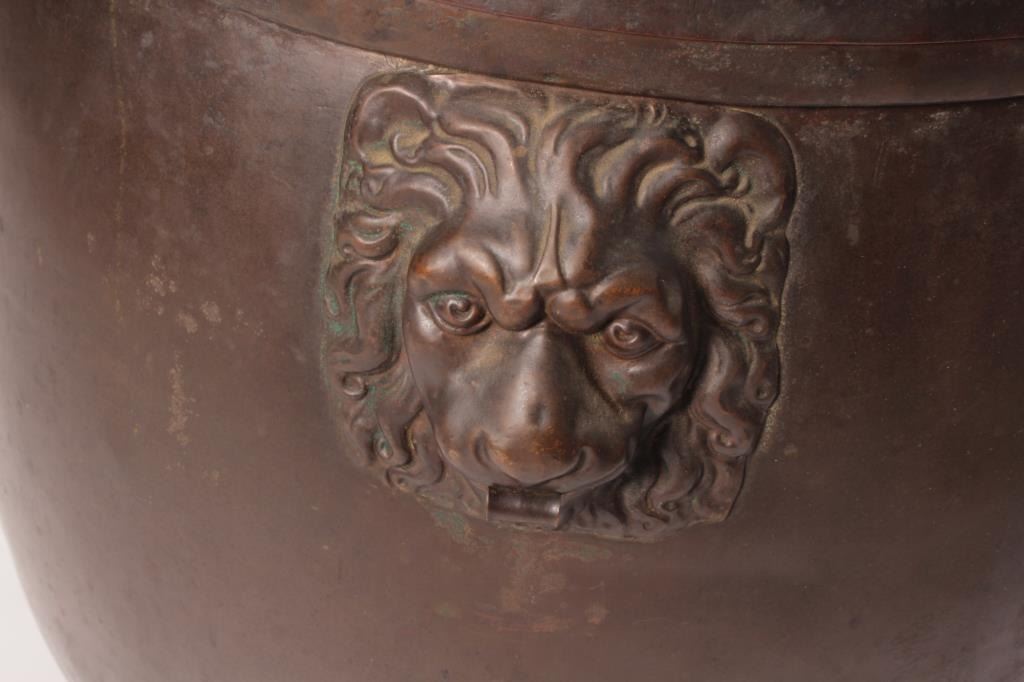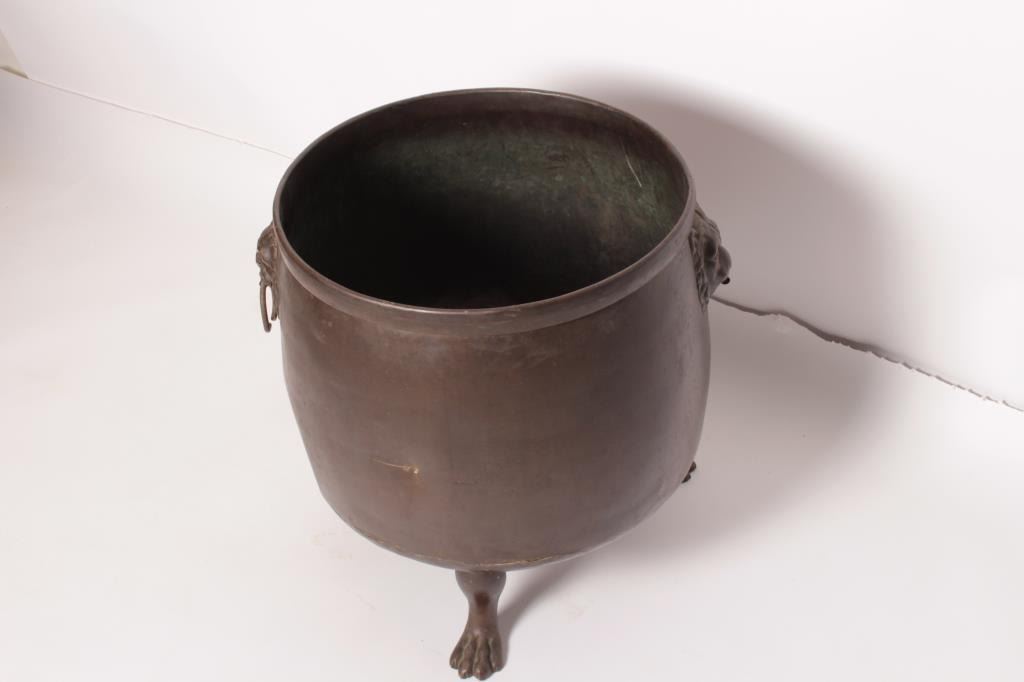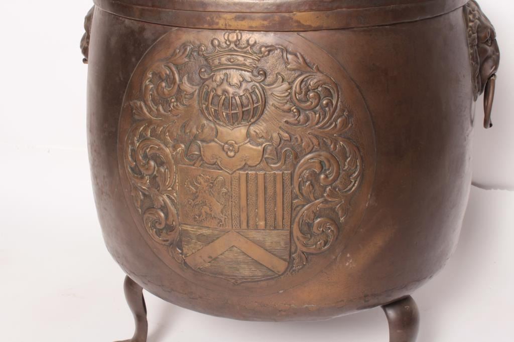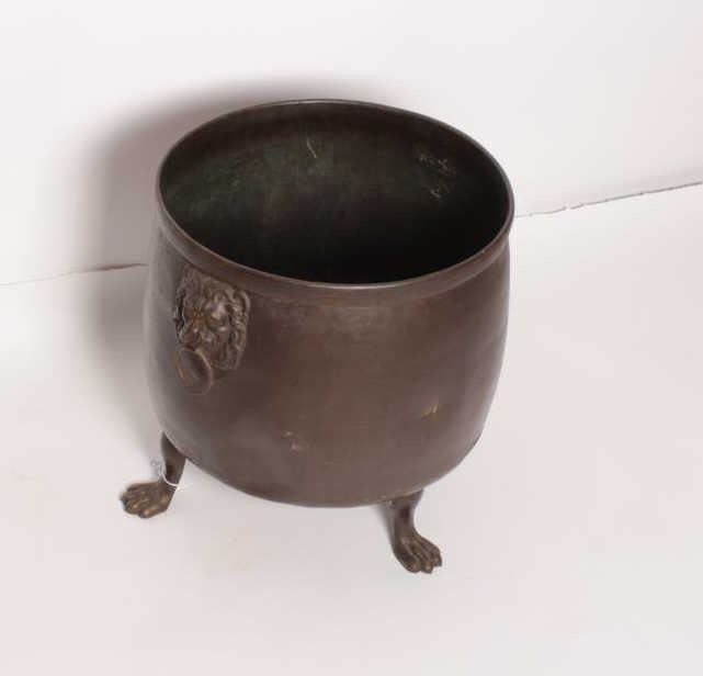 Lot 38 EVE-3 FOOTED BRONZE BRAZIERFooted bronze brazier with armoral crest on the front and lions with rin