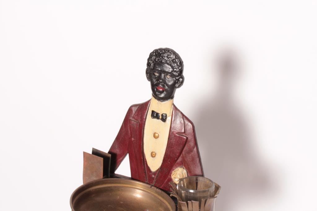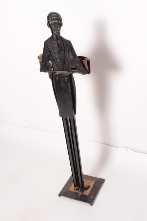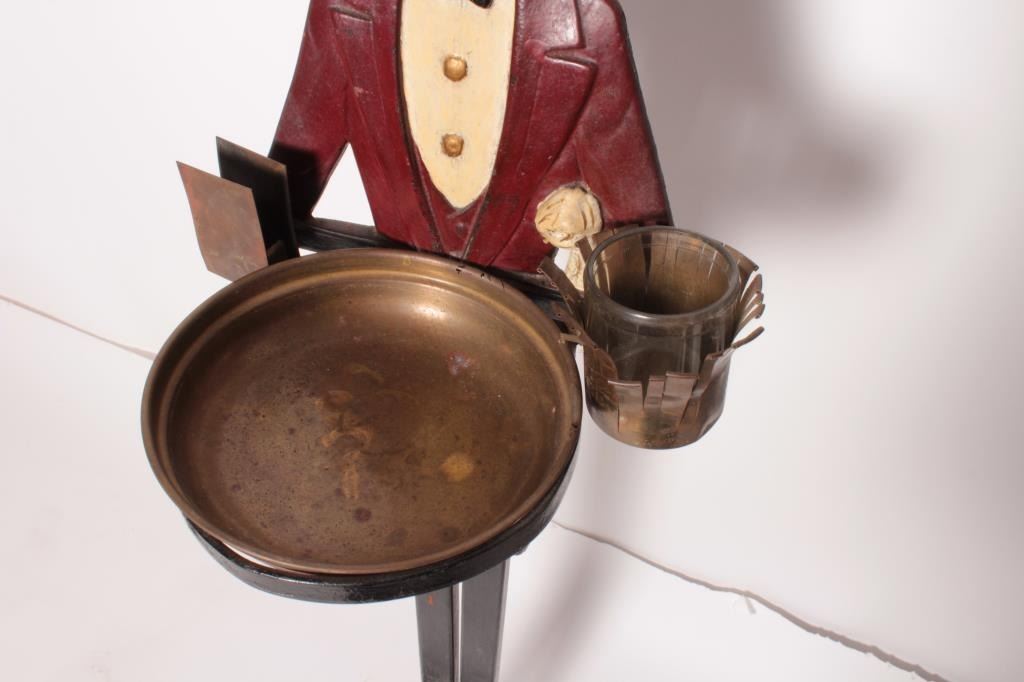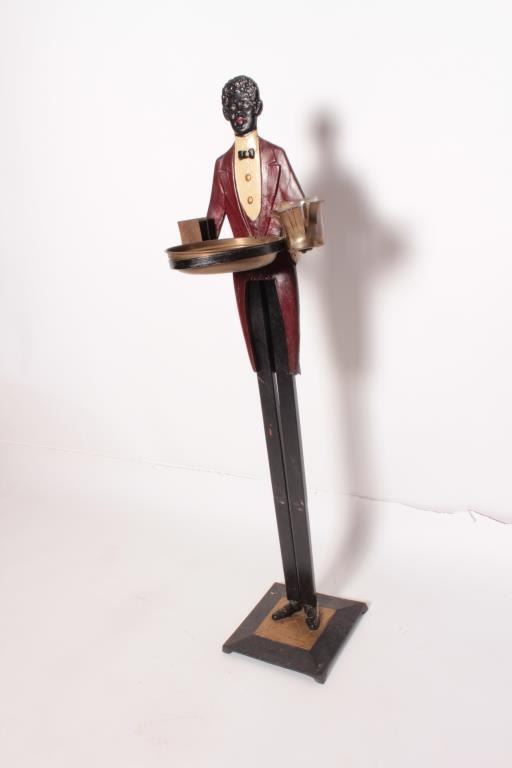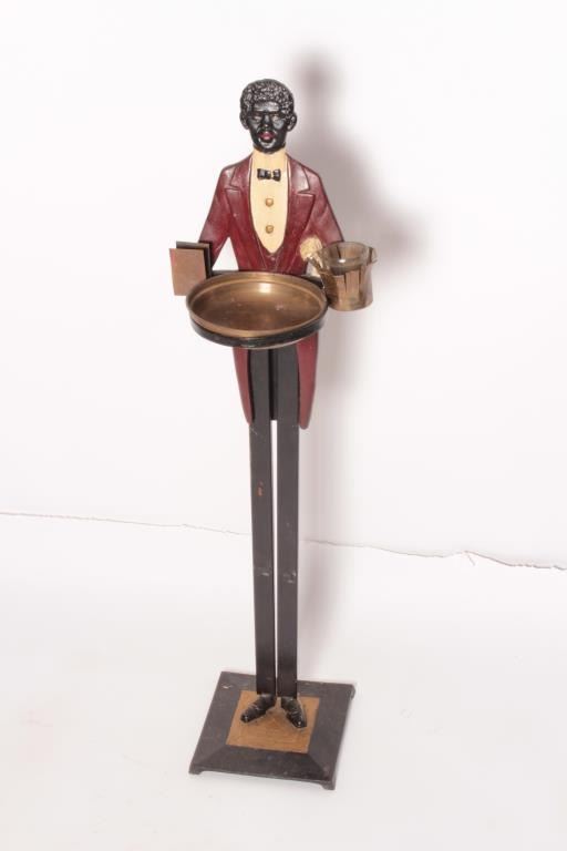 EVE-59 SMOKING BUTLERSmoking butler with ashtray and holder for stick matches and book matches. Measures 36 ½” tall. From the estate of Eric Vaule who was not a racist but was a “Big” smoker! Est.: $300-$600Smoking butler with ashtray and holder for stick matches and book matches. Measures 36 ½” tall. From the estate of Eric Vaule who was not a racist but was a “Big” smoker! Est.: $300-$600