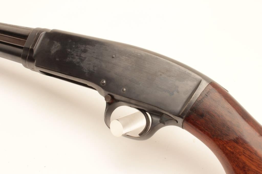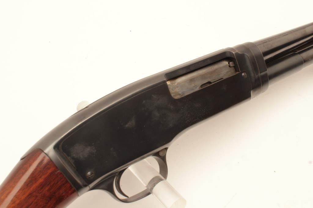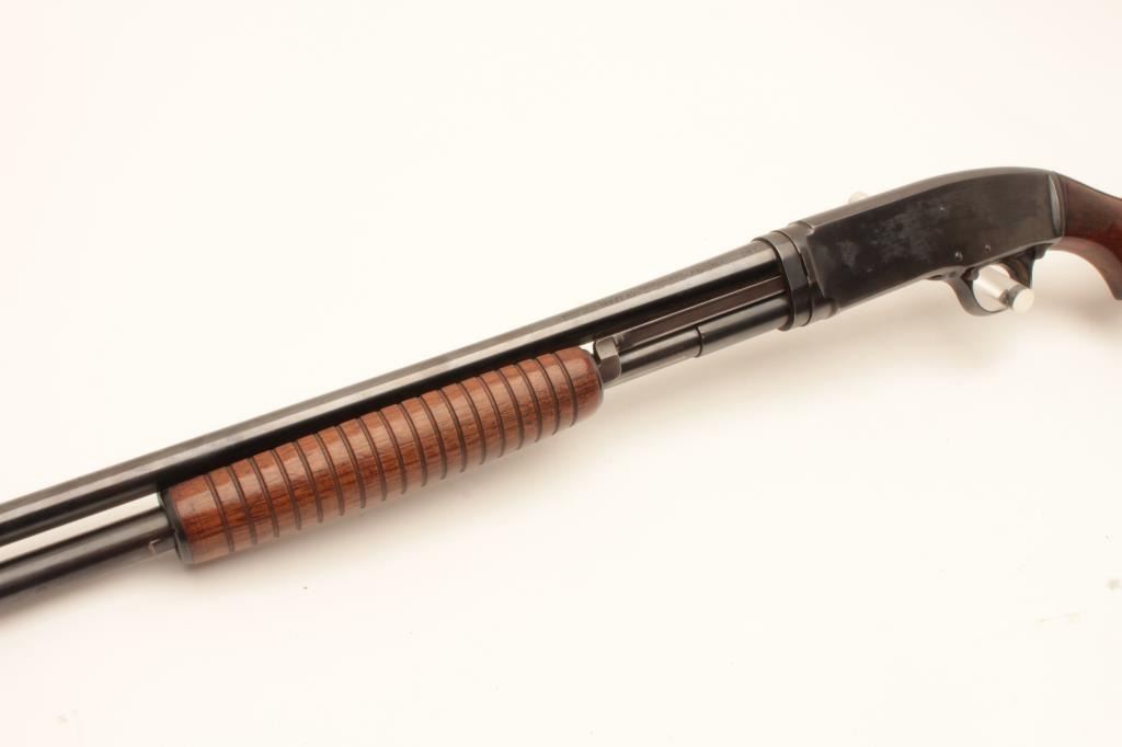 18BG-10 WINCHESTER 42Winchester Model 42 pump action takedown shotgun, .410 gauge, 26” barrel, blued finish, wood stocks, S/N 15419, in overall very good condition with some drifting to the finish, very good bore, crisp action, sharpmarkings, very good wood. (C&R/PPT). Est.: $700-$1,400.Winchester Model 42 pump action takedown shotgun, .410 gauge, 26” barrel, blued finish, wood stocks, S/N 15419, in overall very good condition with some drifting to the finish, very good bore, crisp action, sharpmarkings, very good wood. (C&R/PPT). Est.: $700-$1,400.