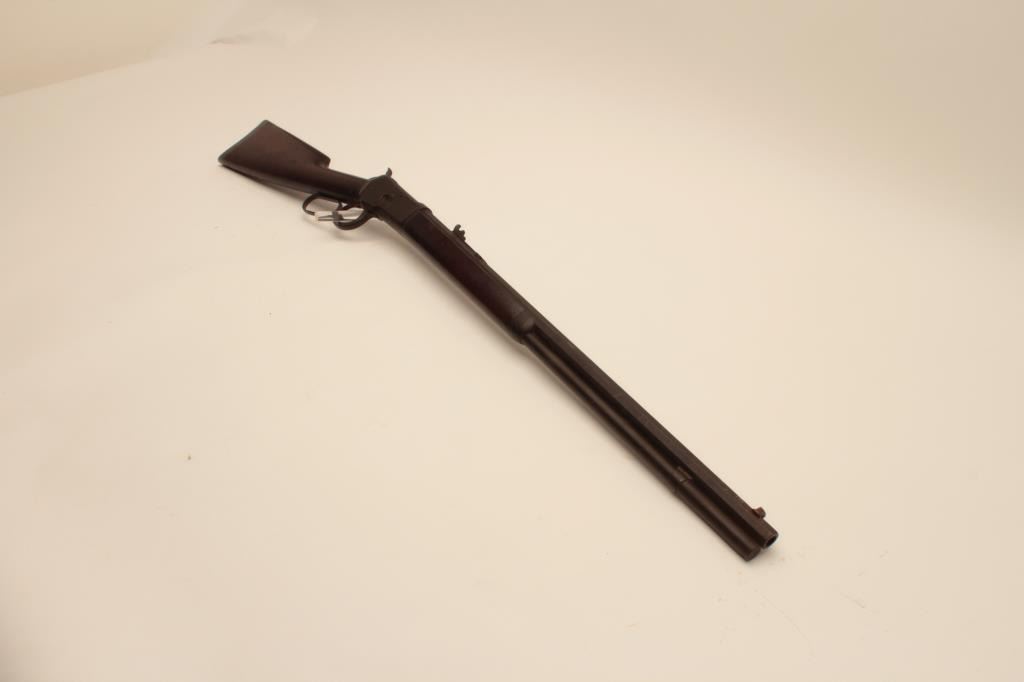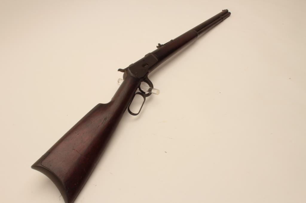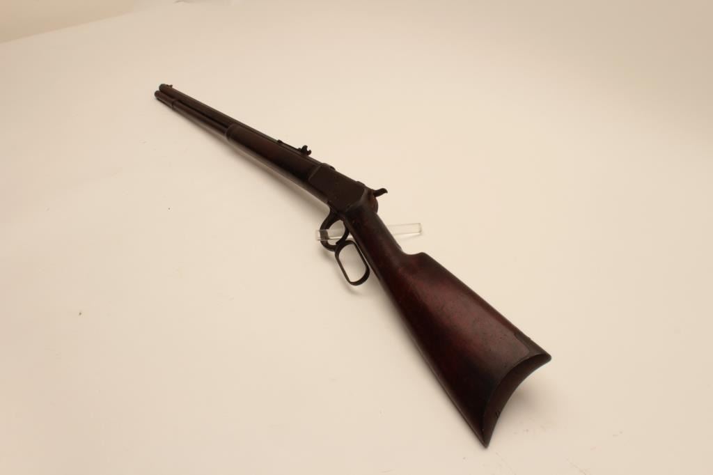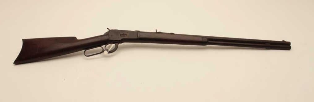 18AH-2 1892 WINCHESTER RIFLE #59559Winchester Model 1892 lever action rifle, .44 WCF caliber, Serial #59559. The rifle is in good overall condition with a 24” octagon barrel and full-length magazine. The barrel, magazine and receiver are showing a heavydark brown patina with light to moderate surface rust in areas. The smooth wood stocks are in good condition showing mars and compressions consistent with carry and use. The butt stock ends with a smooth steelcrescent butt plate. The consignor indicates that the rifle descended from the Cartwright family of Sunflower County, Mississippi. They further stated that the rifle was in the personal collection of Sheriff Cartwright of Sunflower County. The bore is rough and may clean; the action functions and markings are legible. This Winchester, circa 1894, has a great old look and may be researchable. Est.: $800-$1,600. (Antique).Winchester Model 1892 lever action rifle, .44 WCF caliber, Serial #59559. The rifle is in good overall condition with a 24” octagon barrel and full-length magazine. The barrel, magazine and receiver are showing a heavydark brown patina with light to moderate surface rust in areas. The smooth wood stocks are in good condition showing mars and compressions consistent with carry and use. The butt stock ends with a smooth steelcrescent butt plate. The consignor indicates that the rifle descended from the Cartwright family of Sunflower County, Mississippi. They further stated that the rifle was in the personal collection of Sheriff Cartwright of Sunflower County. The bore is rough and may clean; the action functions and markings are legible. This Winchester, circa 1894, has a great old look and may be researchable. Est.: $800-$1,600. (Antique).