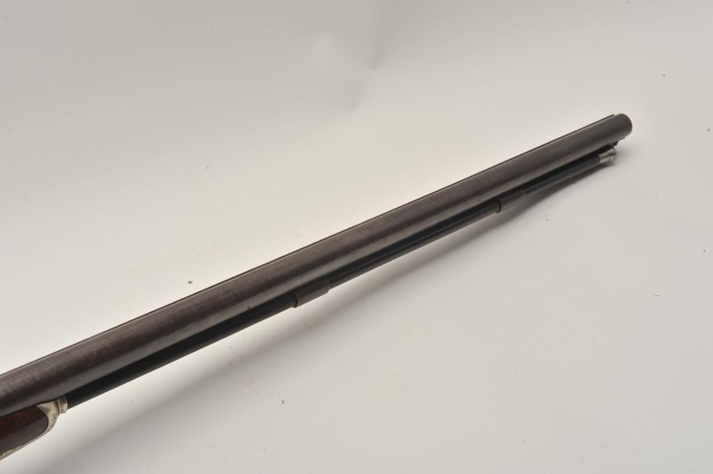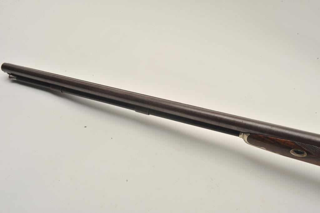18AR-20 DOUBLE PERC. RICHARDS LONDONDouble barrel percussion shotgun of high quality signed “Richards London”. Measures 47 ½” overall with 31” barrels in 12GA with thick walls and reinforced wide rib suitable for slugs. Showing European qualityrestoration and 50%-60% original brown on the barrels with double silver bands at the breech. The stocks and hammers are refinished. Works well and fancy patch and cap boxes. Measures 14 ¼” from trigger tobutt plate. (Antique) Est.: $800-1600Double barrel percussion shotgun of high quality signed “Richards London”. Measures 47 ½” overall with 31” barrels in 12GA with thick walls and reinforced wide rib suitable for slugs. Showing European qualityrestoration and 50%-60% original brown on the barrels with double silver bands at the breech. The stocks and hammers are refinished. Works well and fancy patch and cap boxes. Measures 14 ¼” from trigger tobutt plate. (Antique) Est.: $800-1600