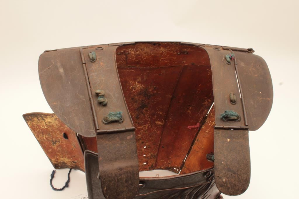 Lot 153 EVE-56 JAPANESE BREAST PLATERare 4 piece forged steel Japanese armor consisting of breast plate, ma