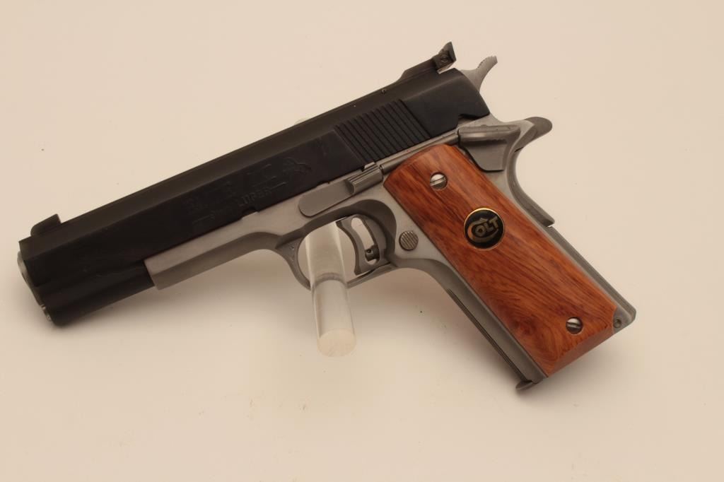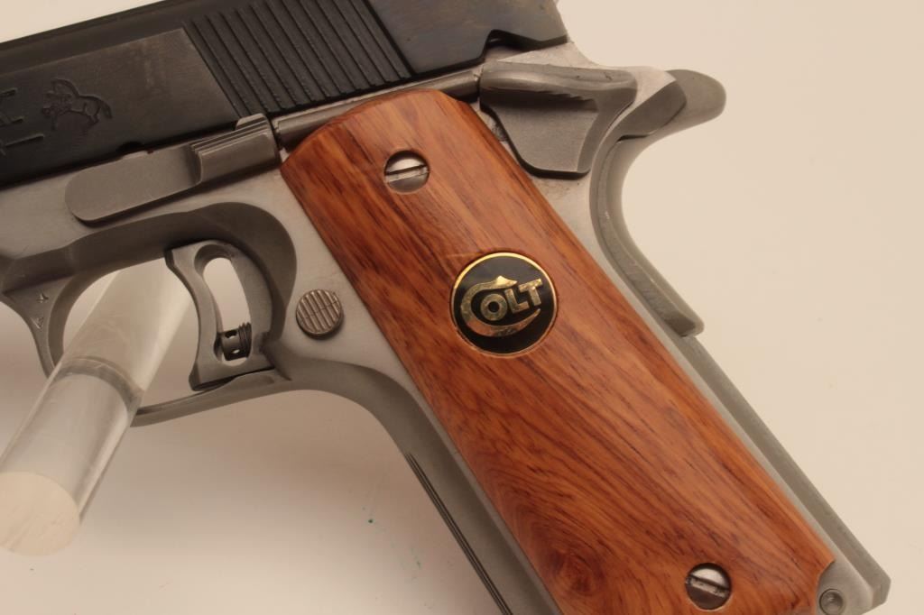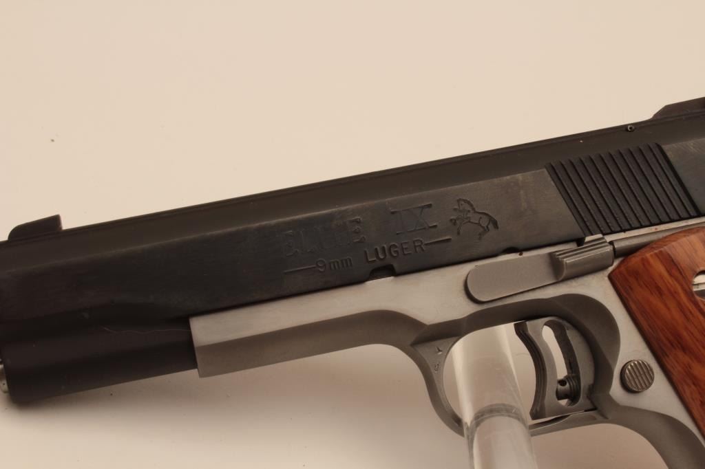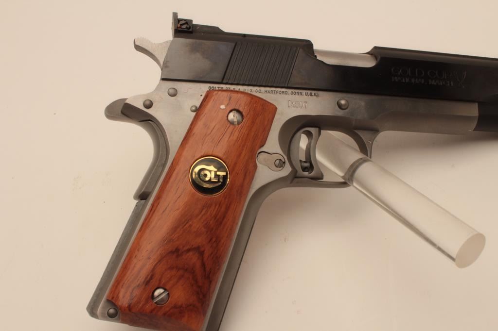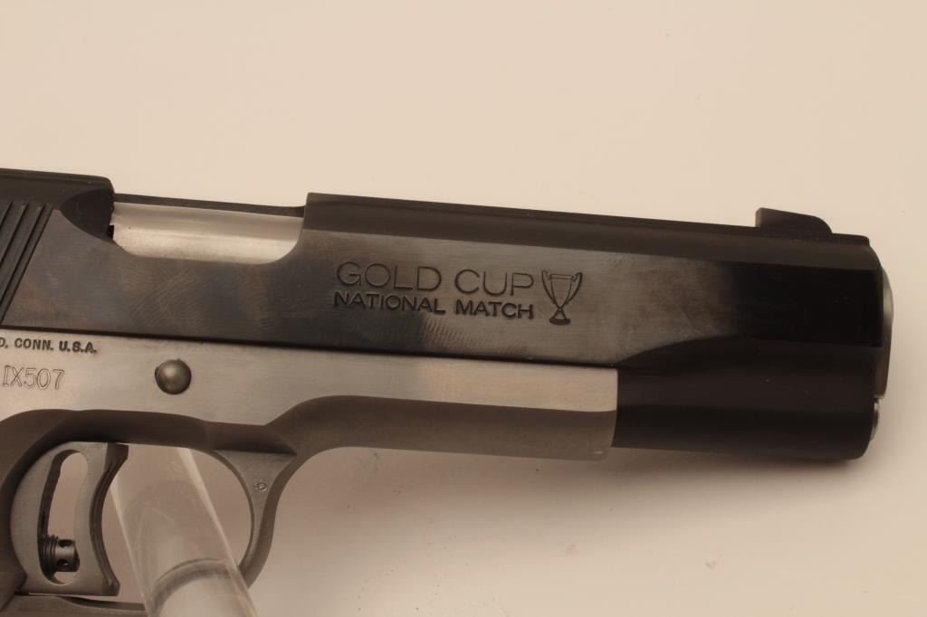 18BM-22 COLT ELITEColt Elite IX Gold Cup, 9mm, #IX507, two tone with stainless frame and blued slide, 5" barrel, adjustable sights, adjustable trigger with smooth medallion grips. Pistol is in excellent condition overall, excellent boreand action. Includes original box in very good condition, manual and one mag. (Modern / PPT) Est. $1000-2000Colt Elite IX Gold Cup, 9mm, #IX507, two tone with stainless frame and blued slide, 5" barrel, adjustable sights, adjustable trigger with smooth medallion grips. Pistol is in excellent condition overall, excellent boreand action. Includes original box in very good condition, manual and one mag. (Modern / PPT) Est. $1000-2000