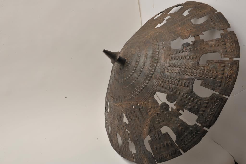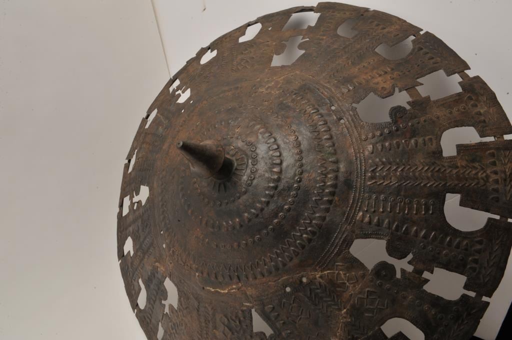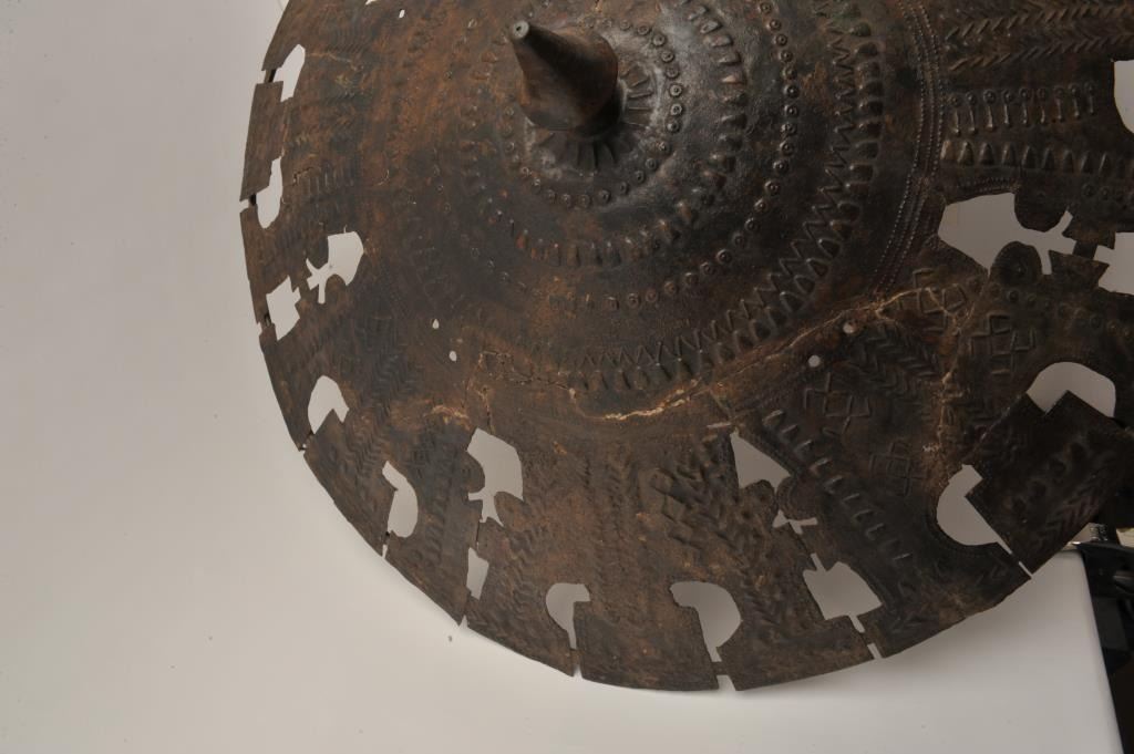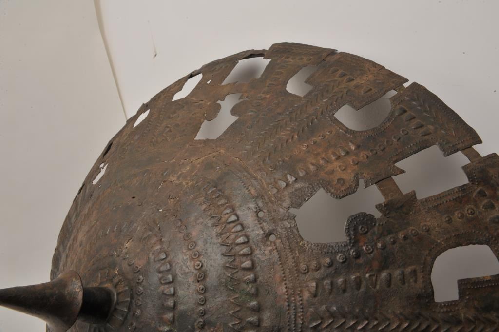 EVE-55 BRONZERare cast bronze shield possibly Luristan and 300-600 B.C. Measures approximately 30” across the center. Shows several repairs and museum restoration and no large areas of epoxy or filler. Simple geometric decoration. Amazingly intact. The best we have seen offered of its type. The estate of Eric Vaule. Est.: $3,000-$6,000Rare cast bronze shield possibly Luristan and 300-600 B.C. Measures approximately 30” across the center. Shows several repairs and museum restoration and no large areas of epoxy or filler. Simple geometric decoration. Amazingly intact. The best we have seen offered of its type. The estate of Eric Vaule. Est.: $3,000-$6,000