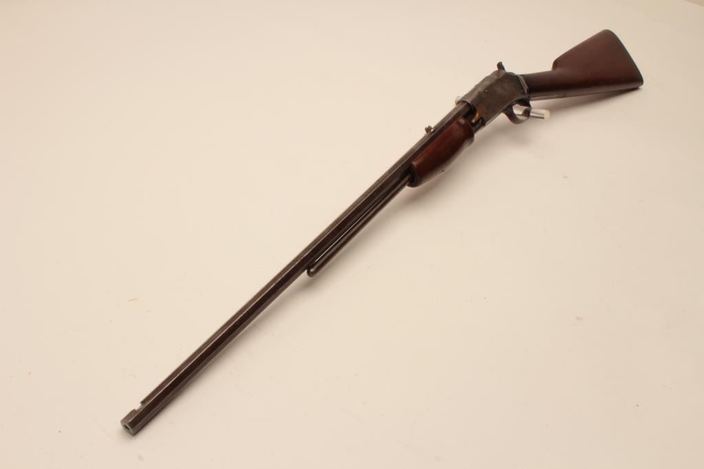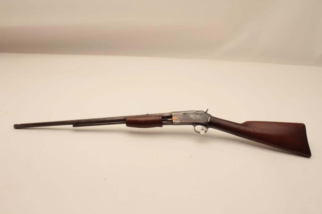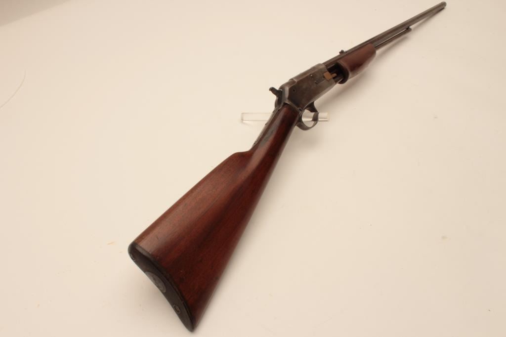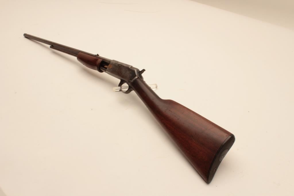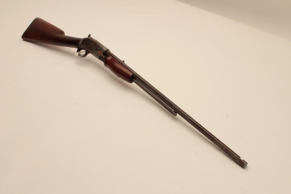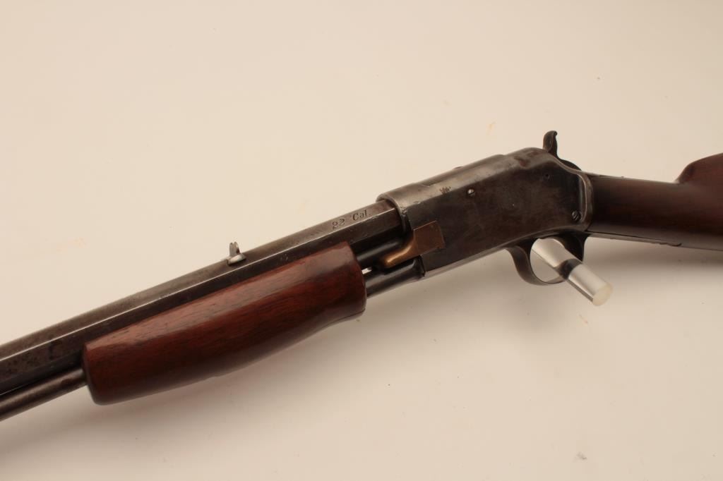 17KH-554 COLT 22 #3514Colt Lightning pump action rifle, .22 caliber, blued finish, wood stocks, S/N 3514, in overall good condition with traces of blue in protected areas, working action, fair only bore, overall good wood stocks withRampant Colt checkered hard rubber butt plate. (Antique). Est.: $400-$800.Colt Lightning pump action rifle, .22 caliber, blued finish, wood stocks, S/N 3514, in overall good condition with traces of blue in protected areas, working action, fair only bore, overall good wood stocks withRampant Colt checkered hard rubber butt plate. (Antique). Est.: $400-$800.