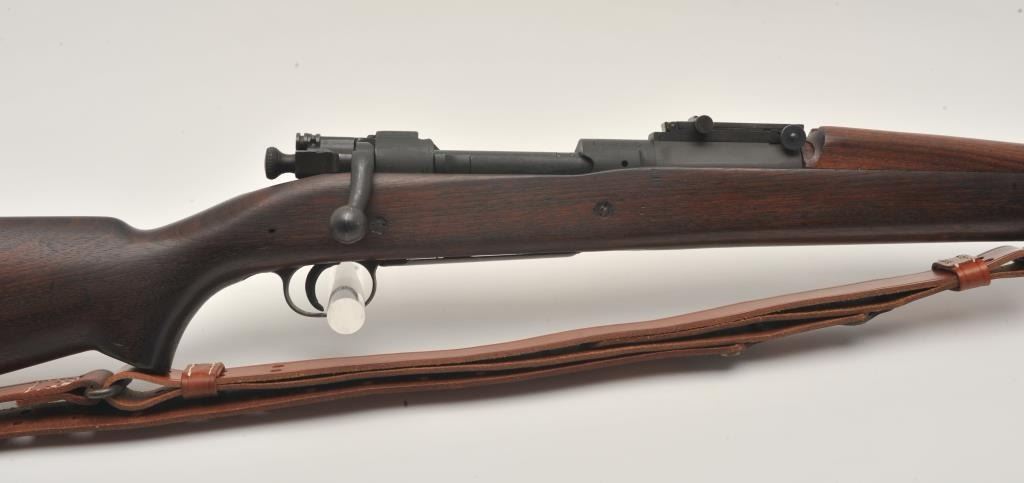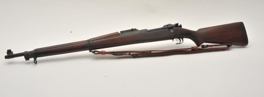 17MH-48 SPRINGFIELD 1903 #1442346U.S. Springfield Model 1903 bolt action rifle, .30-06 caliber, S.A. barrel dated 3-32, military finish, wood stock, leather sling, S/N 1442346, in overall good to very good condition with a good bore, crispaction, good markings and very good wood stock displaying circle P proof and “D.A.L.” cartouche on left side of stock above trigger. (C&R/PPT). Est.: $400-$800.U.S. Springfield Model 1903 bolt action rifle, .30-06 caliber, S.A. barrel dated 3-32, military finish, wood stock, leather sling, S/N 1442346, in overall good to very good condition with a good bore, crispaction, good markings and very good wood stock displaying circle P proof and “D.A.L.” cartouche on left side of stock above trigger. (C&R/PPT). Est.: $400-$800.