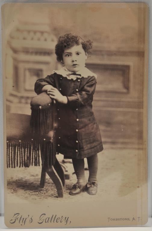 18EMY-24 MISC LOTLot of 2 early Cabinet photos, each of a child; 1 holding a rifle and indentified on the back in ink “Hubert Fenwick Morris/Taken Sept. 1900”, the other by Fly’s Gallery, Tombstone, A.T. Est.: $75-$125.Lot of 2 early Cabinet photos, each of a child; 1 holding a rifle and indentified on the back in ink “Hubert Fenwick Morris/Taken Sept. 1900”, the other by Fly’s Gallery, Tombstone, A.T. Est.: $75-$125.