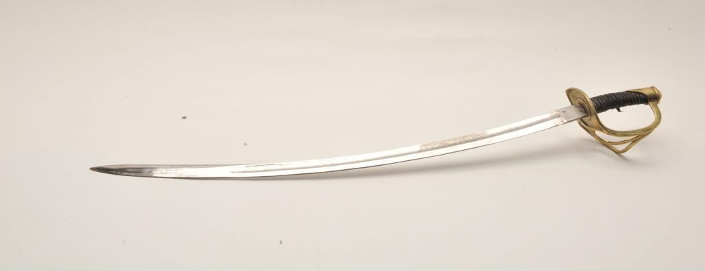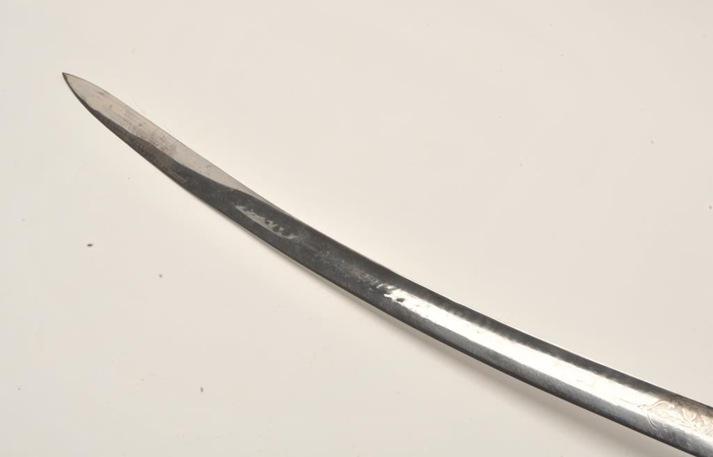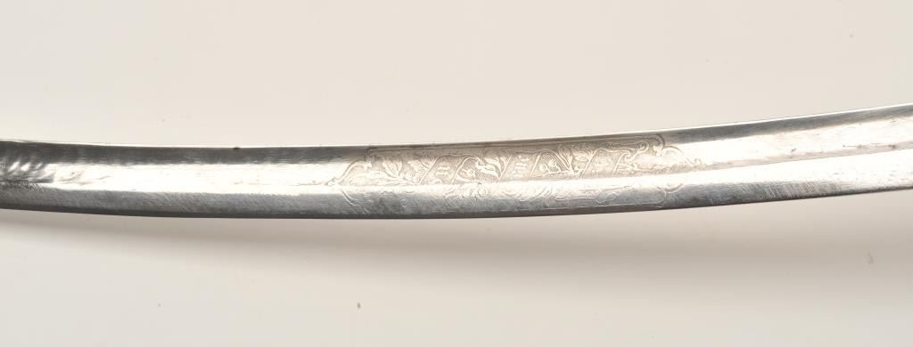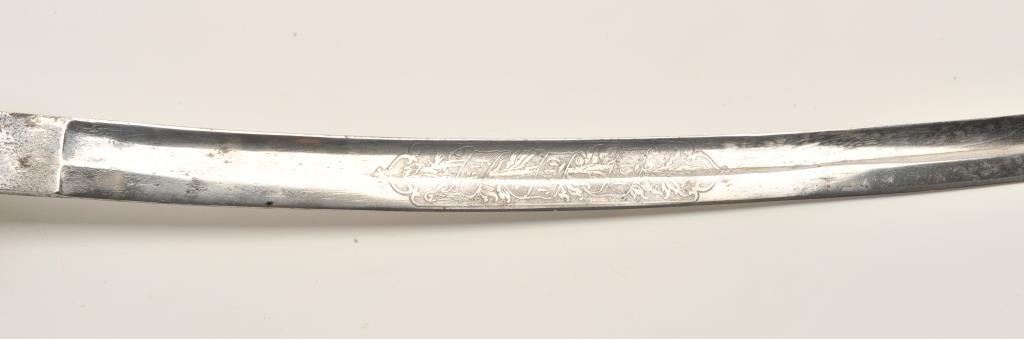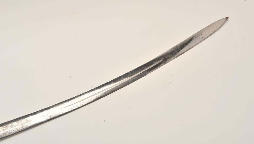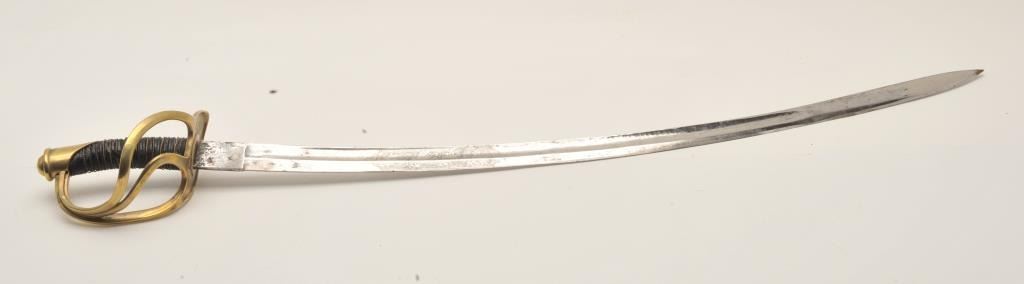 Lot 604 18AR-6 D GUARD SWORDEtched blade brass “D” guard sword (no scabbard), approximately 37” overall wit