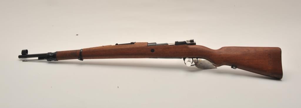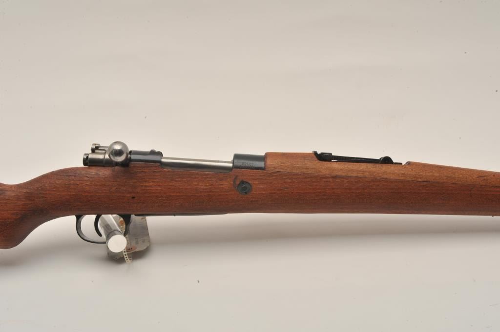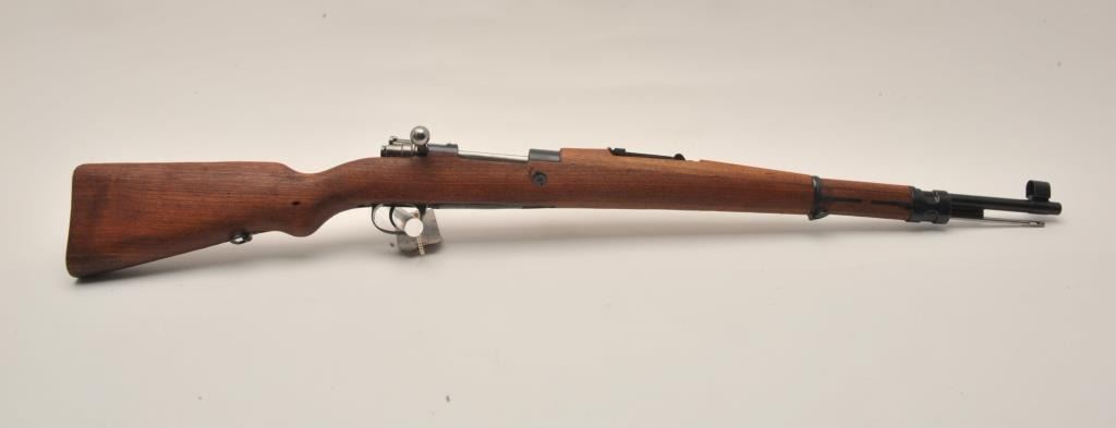 17KH-500 MAUSER M24 #38AVC844Yugoslavian Mauser Model 24/47 bolt action rifle, import-marked, 7.92mm caliber, military finish, wood stock, S/N 3ABCL44, in overall good + condition showing a coating of cosmoline; good bore, action, markings andwood stock; accompanied by a bayonet and sheath plus leather pouch and straps; with cardboard shipping box. (C&R/PPT). Est.: $250-$500.Yugoslavian Mauser Model 24/47 bolt action rifle, import-marked, 7.92mm caliber, military finish, wood stock, S/N 3ABCL44, in overall good + condition showing a coating of cosmoline; good bore, action, markings andwood stock; accompanied by a bayonet and sheath plus leather pouch and straps; with cardboard shipping box. (C&R/PPT). Est.: $250-$500.