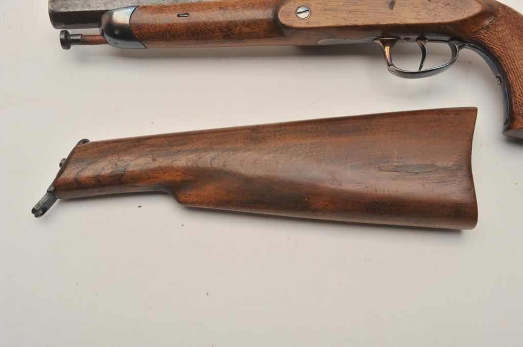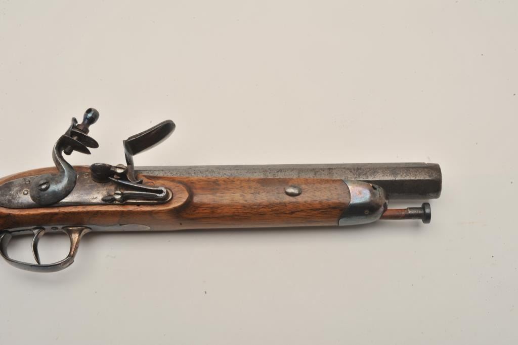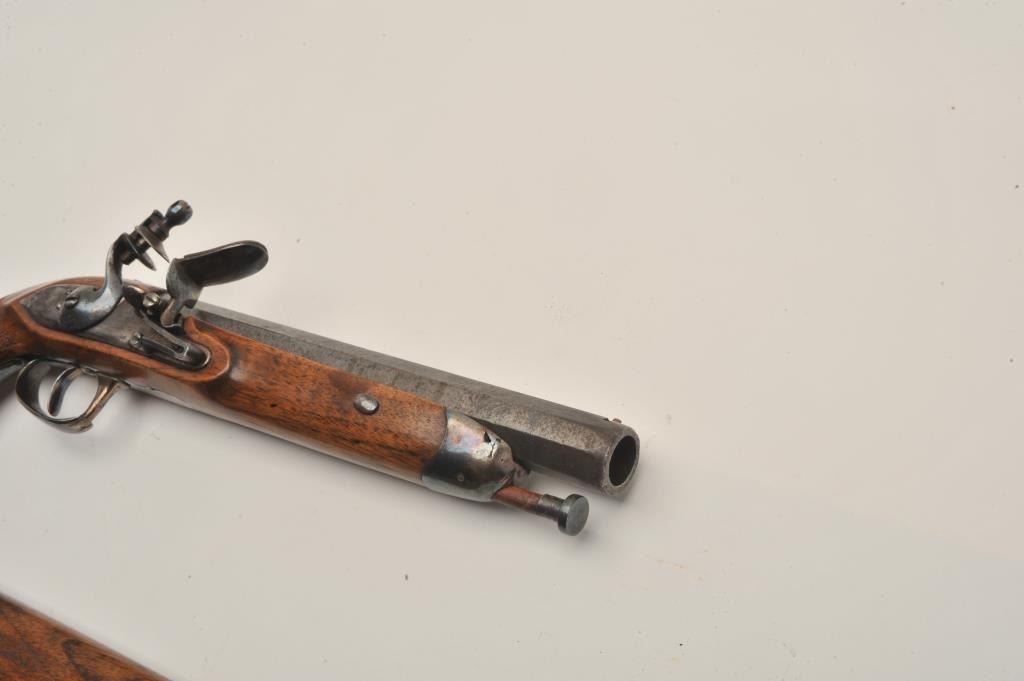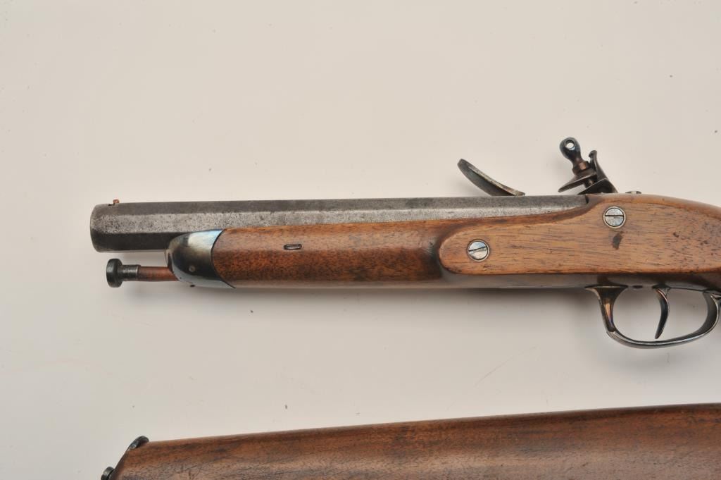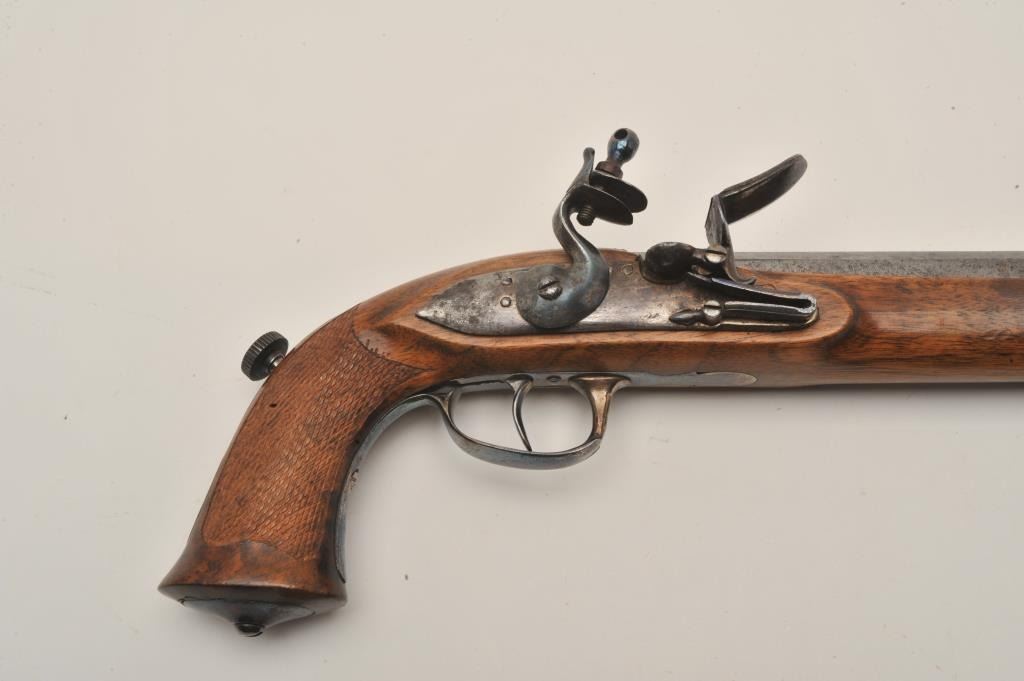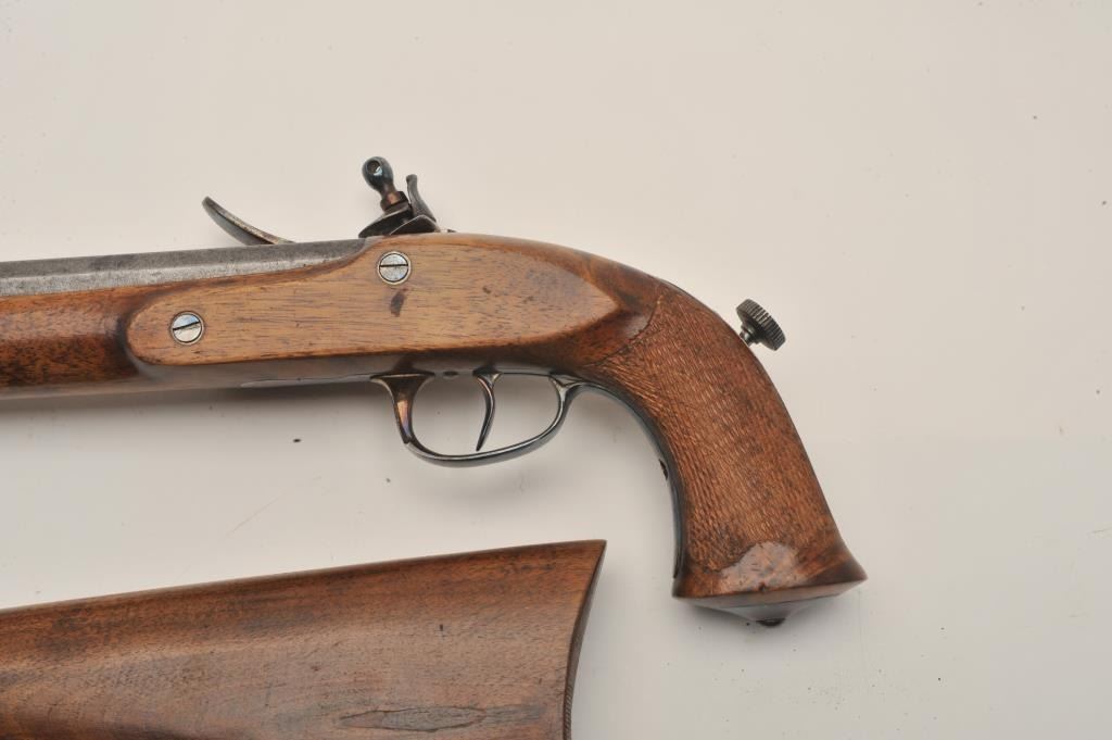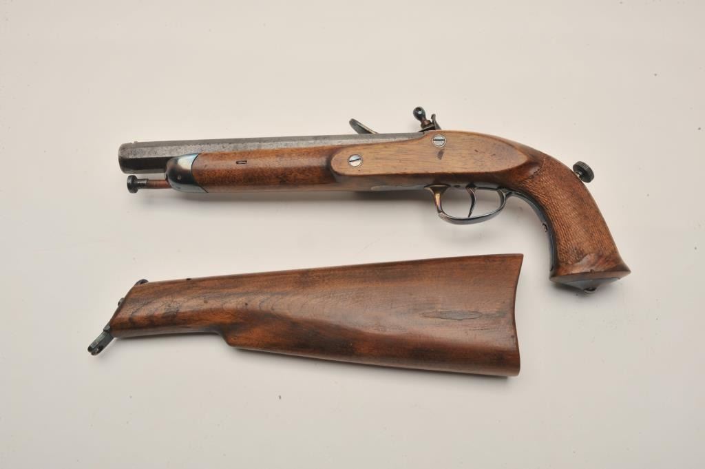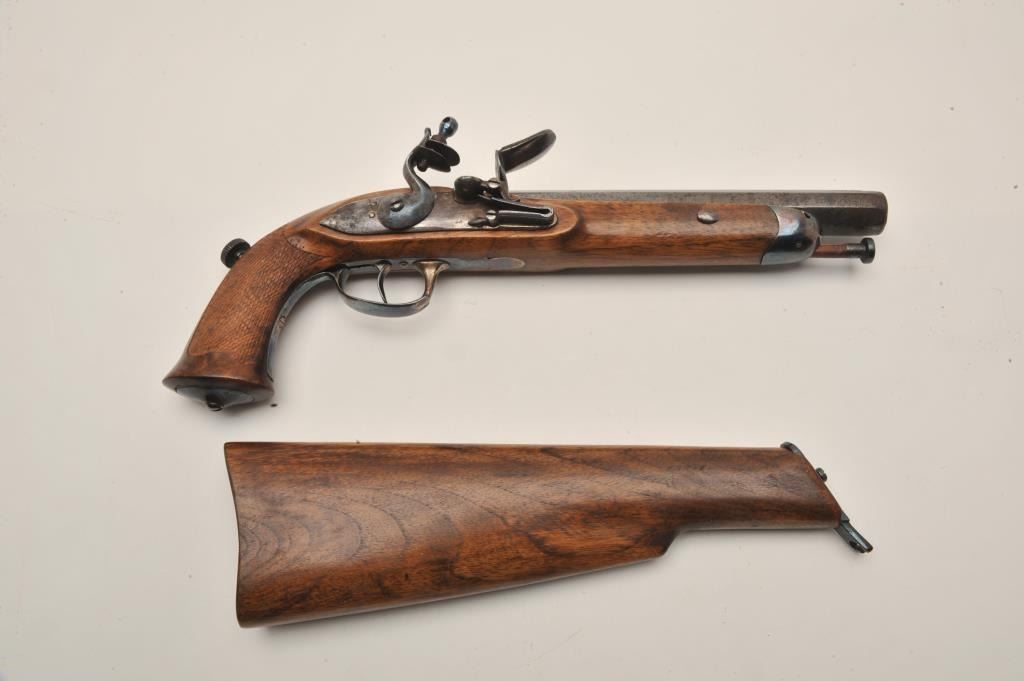 Lot 712 18AR-31 FLINTLOCK WITH STOCKEarly 19th century flintlock officer’s pistol with detachable shoulder
