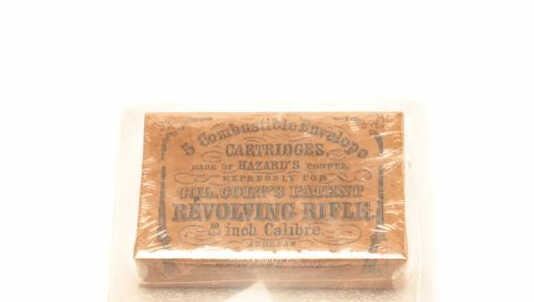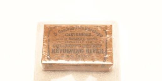 16GL-4 COLT REV RIFLE CARTRIDGESUnopened package of skin cartridges in .50 caliber for revolving rifle. Colt Cartridge Works marked. Minor aging and near excellent. Est.: $250-500Unopened package of skin cartridges in .50 caliber for revolving rifle. Colt Cartridge Works marked. Minor aging and near excellent. Est.: $250-500