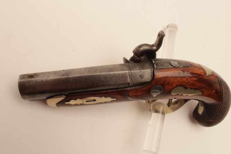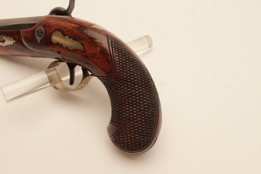 Lot 760 18CF-5 PERC DERRINGERLarge size Philadelphia style percussion derringer with German silver mounts a