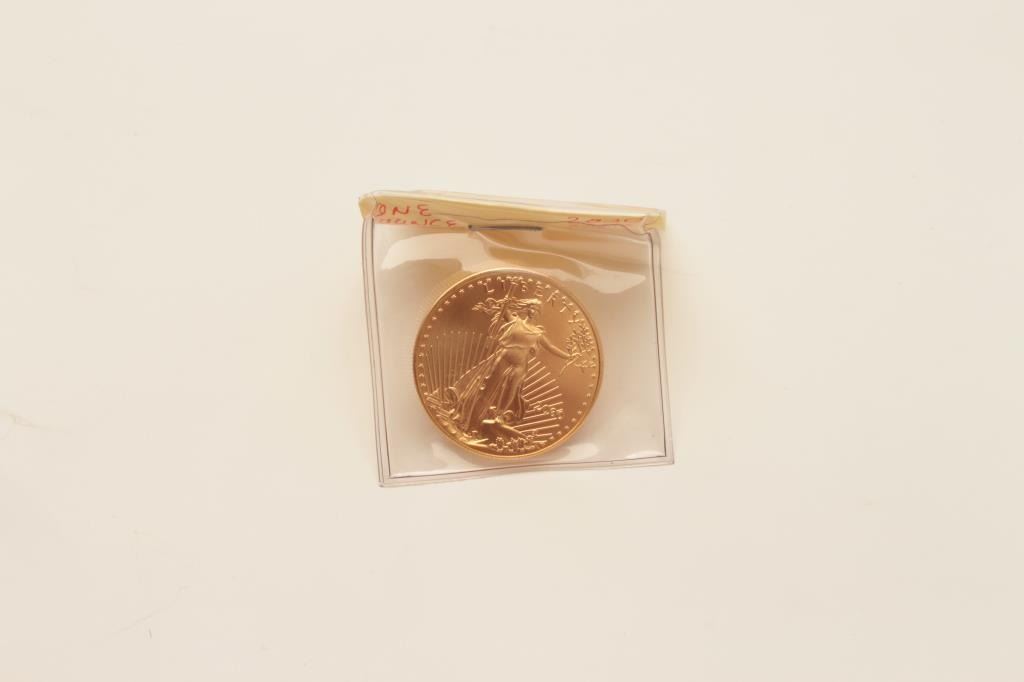 17HW-19 2000 DATED 1 OZ EAGLEGold 1oz. 2000 dated eagle in unc. Condition. Old collector’s horde. $1300-$2600Gold 1oz. 2000 dated eagle in unc. Condition. Old collector’s horde. $1300-$2600