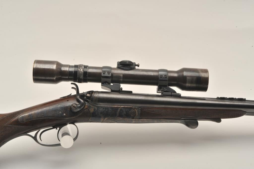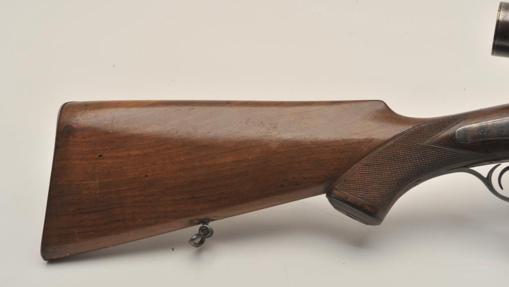 18AR-51 COMBO W/SCOPECombination SxS exposed hammers rifle/shotgun, 6.5mm caliber/16 gauge, 27.5” barrels, blued and case hardened finish, checkered wood stocks, double triggers, mounted with a Wetzler 4X scope displayingcrisp optics. This gun is in overall good to very good condition with good + bores, crisp actions, back action lockplates are marked “J. Peterlongo” and “Innsbruck”; very good wood stocks. (Antique). Est.:$1,250-$2,500.Combination SxS exposed hammers rifle/shotgun, 6.5mm caliber/16 gauge, 27.5” barrels, blued and case hardened finish, checkered wood stocks, double triggers, mounted with a Wetzler 4X scope displayingcrisp optics. This gun is in overall good to very good condition with good + bores, crisp actions, back action lockplates are marked “J. Peterlongo” and “Innsbruck”; very good wood stocks. (Antique). Est.:$1,250-$2,500.