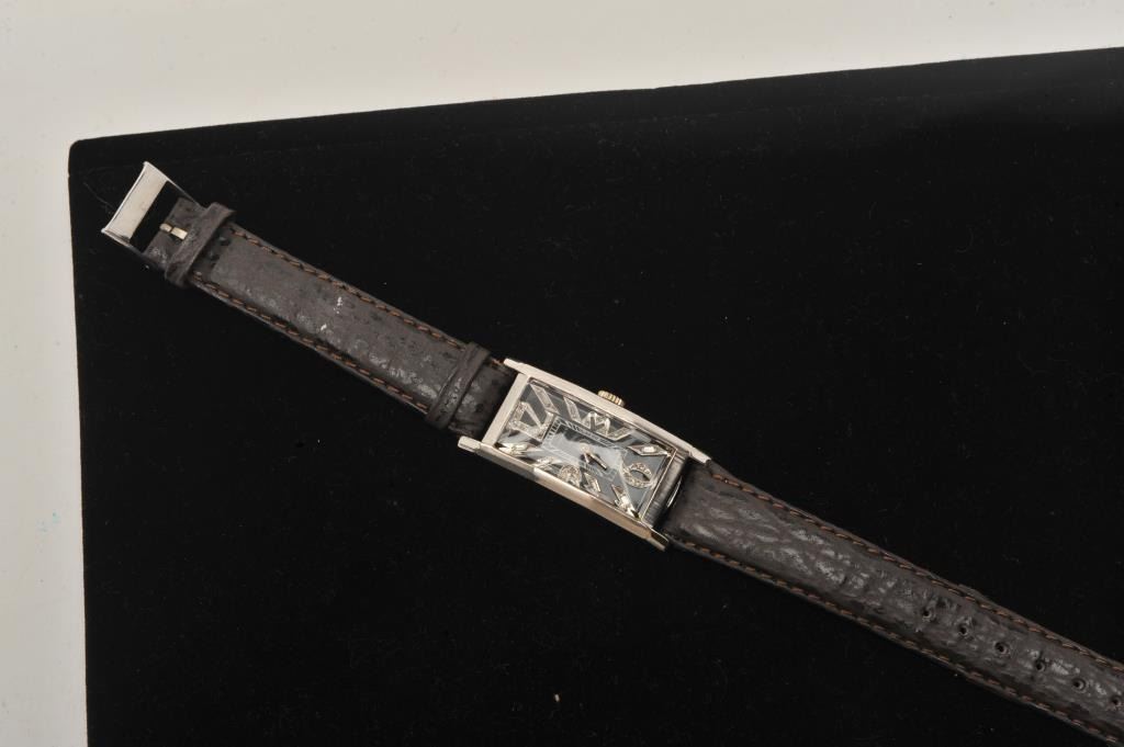 18BZ-5 VINTAGE LONGINES WRIST WATCHVintage platinum Longines wrist watch with curvex style body from 1930’s. Near fine with deluxe extra special under numerals and dial. Reconditioned and running. From a major collector. Est.: $2000-$4000Vintage platinum Longines wrist watch with curvex style body from 1930’s. Near fine with deluxe extra special under numerals and dial. Reconditioned and running. From a major collector. Est.: $2000-$4000