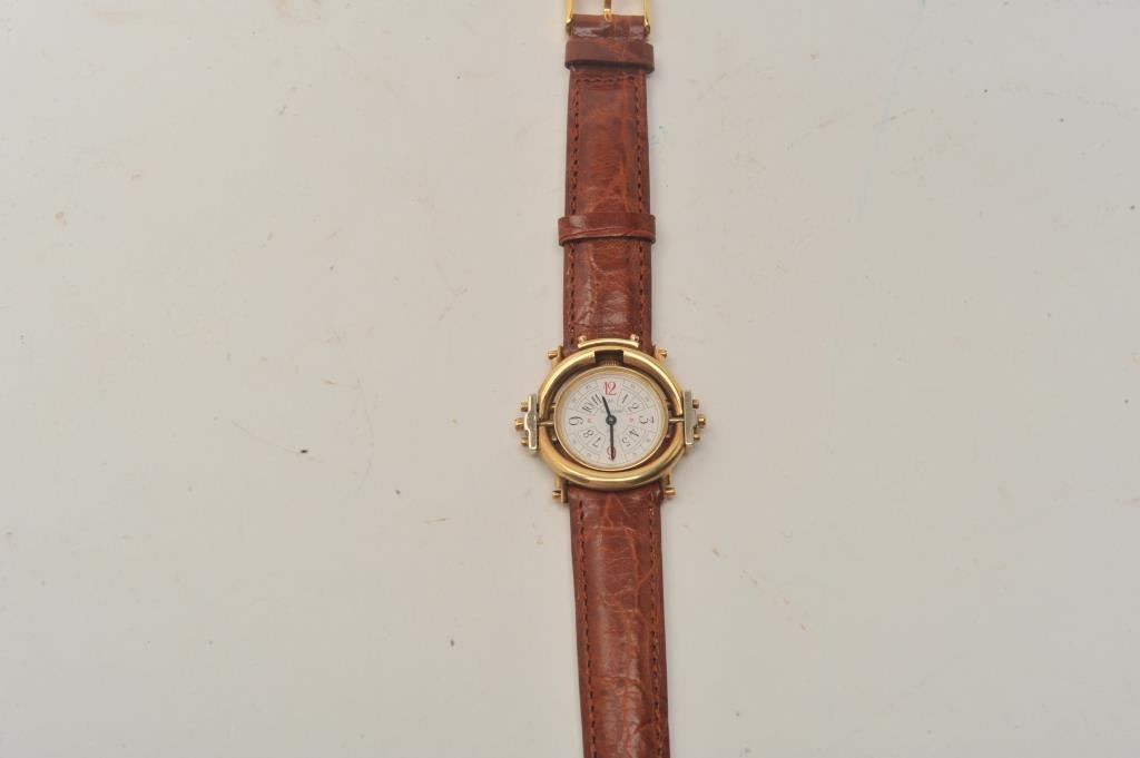 Lot 792 18BZ-6 VINTAGE SYLVAIN WRISTWATCHVintage 2 color gold 18KT ladies designer wristwatch by Sylvain in