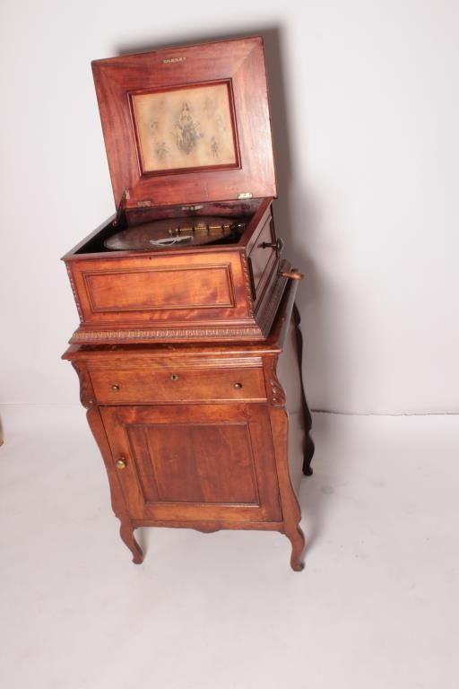 18BZ-12 REGINA DISK MUSIC BOXRegina disk music box with 14 discs and stand. In very good condition and plays well. Est.: $2000-$4000Regina disk music box with 14 discs and stand. In very good condition and plays well. Est.: $2000-$4000