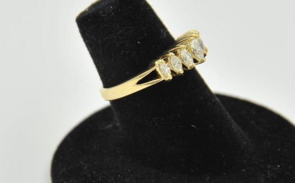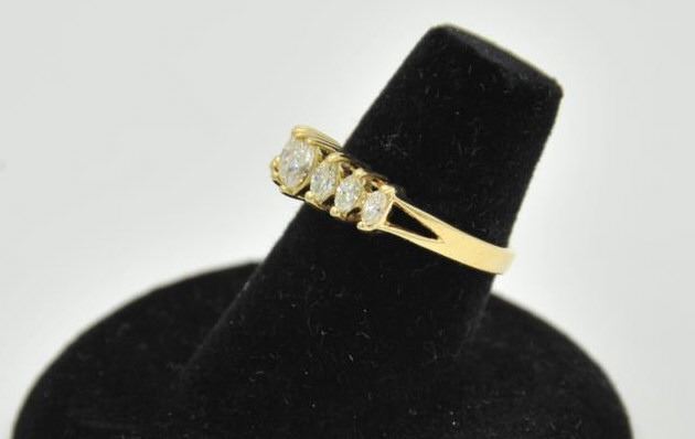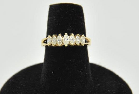 18RPS-28 DIAMOND RINGOne seven marquee diamond ring in 14k yellow gold. 7 diamonds weigh approx 0.60ct EST:$500-1000One seven marquee diamond ring in 14k yellow gold. 7 diamonds weigh approx 0.60ct EST:$500-1000