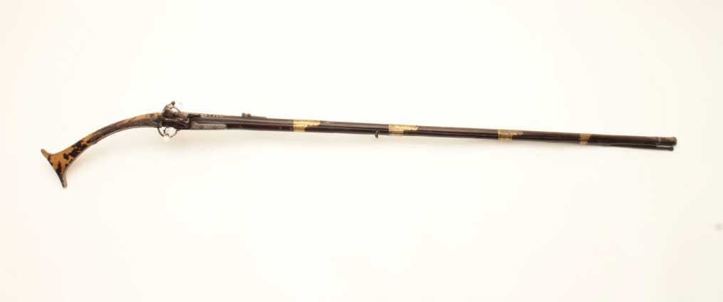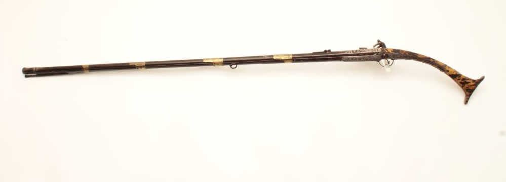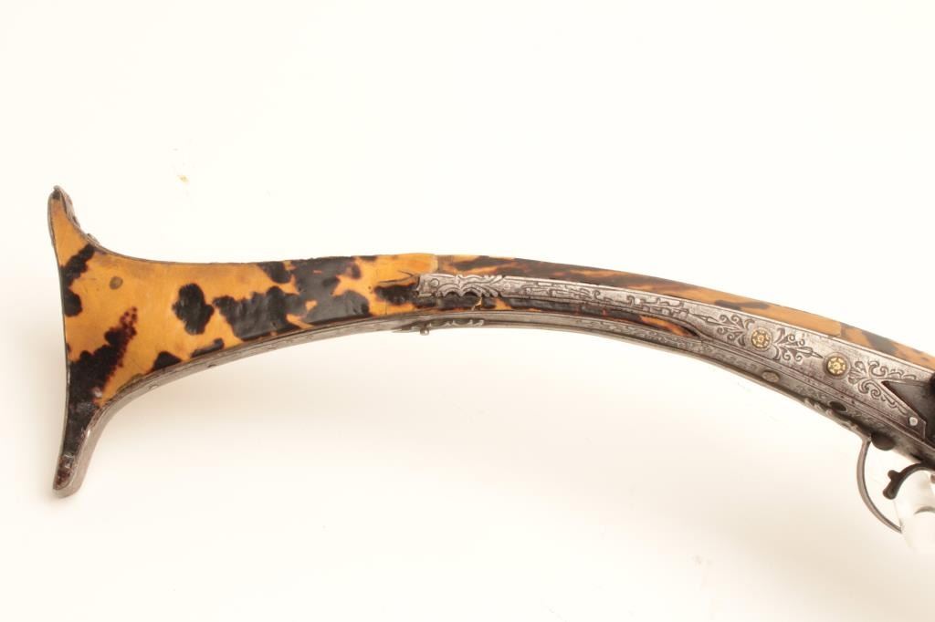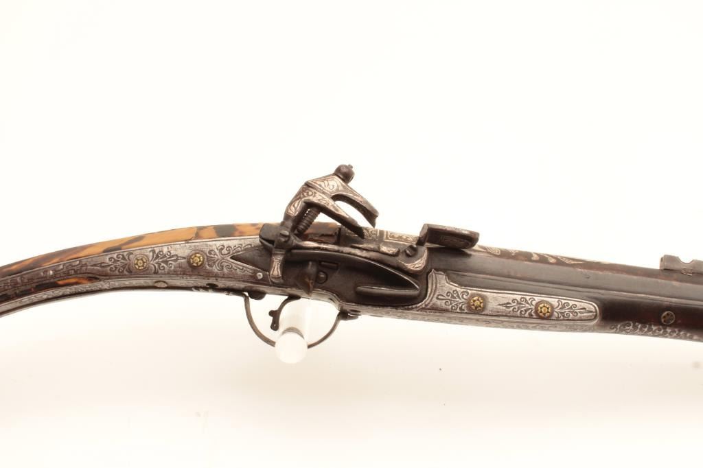 Lot 818 EVE-113 MIQUELET FLINTLOCK MUSKETAlbanian or Baltic miquelet flintlock musket with unique tortoise