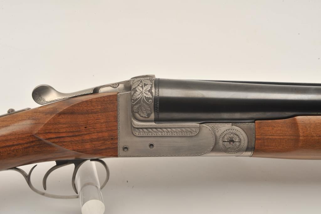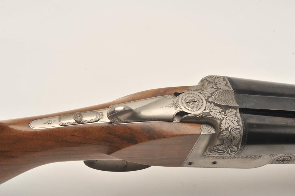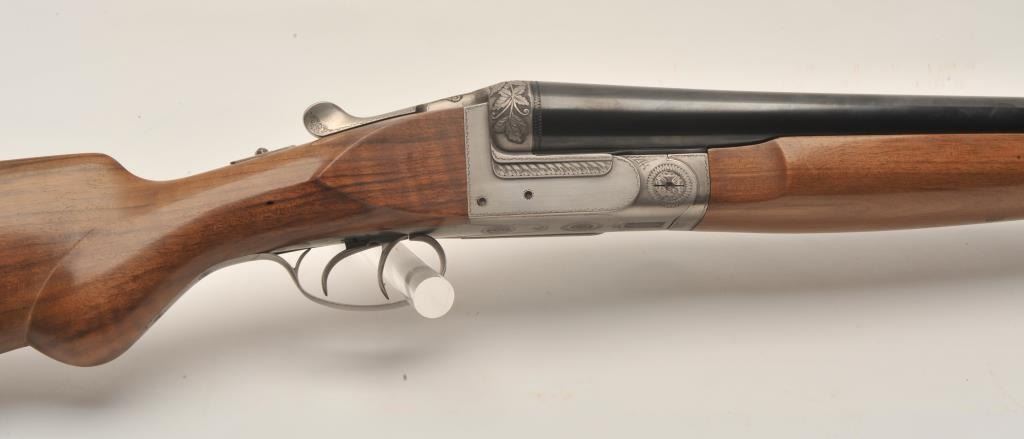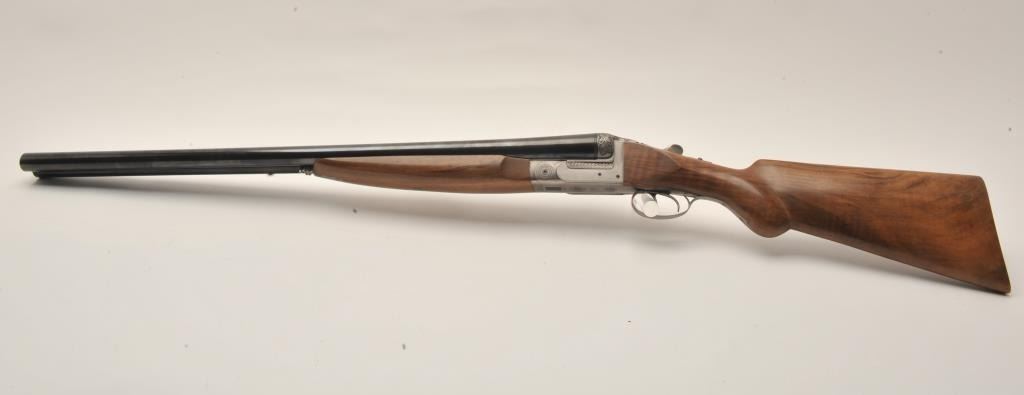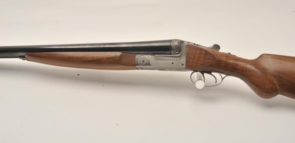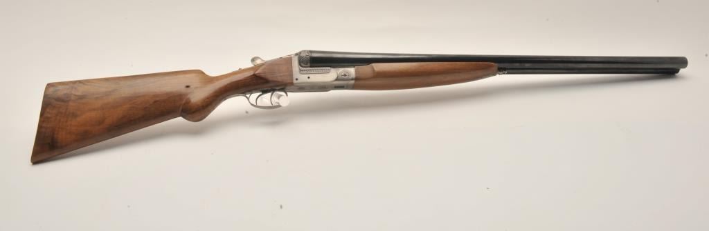18AR-60 HUGE 4 BOREHuge 4 bore SxS by Lerye, 1 of only 2 made (ca. 1989; marked under forend “1789-1989), engraved by Petiot, blued barrels, finely grained wood stocks; overall fine condition showing little if any use; double triggers,expertly accomplished engraving to receiver! (Modern). Est.: $10,000-$20,000.Huge 4 bore SxS by Lerye, 1 of only 2 made (ca. 1989; marked under forend “1789-1989), engraved by Petiot, blued barrels, finely grained wood stocks; overall fine condition showing little if any use; double triggers,expertly accomplished engraving to receiver! (Modern). Est.: $10,000-$20,000.