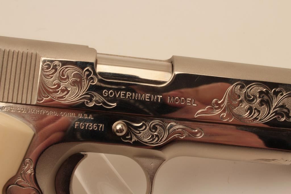 Lot 839 18BM-36 COLT GOV'T MDLEUltra rare Colt Custom Shop Government Model Engraving Sampler, .45 ACP, nic