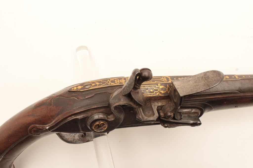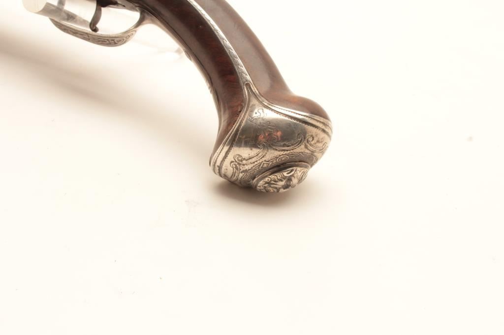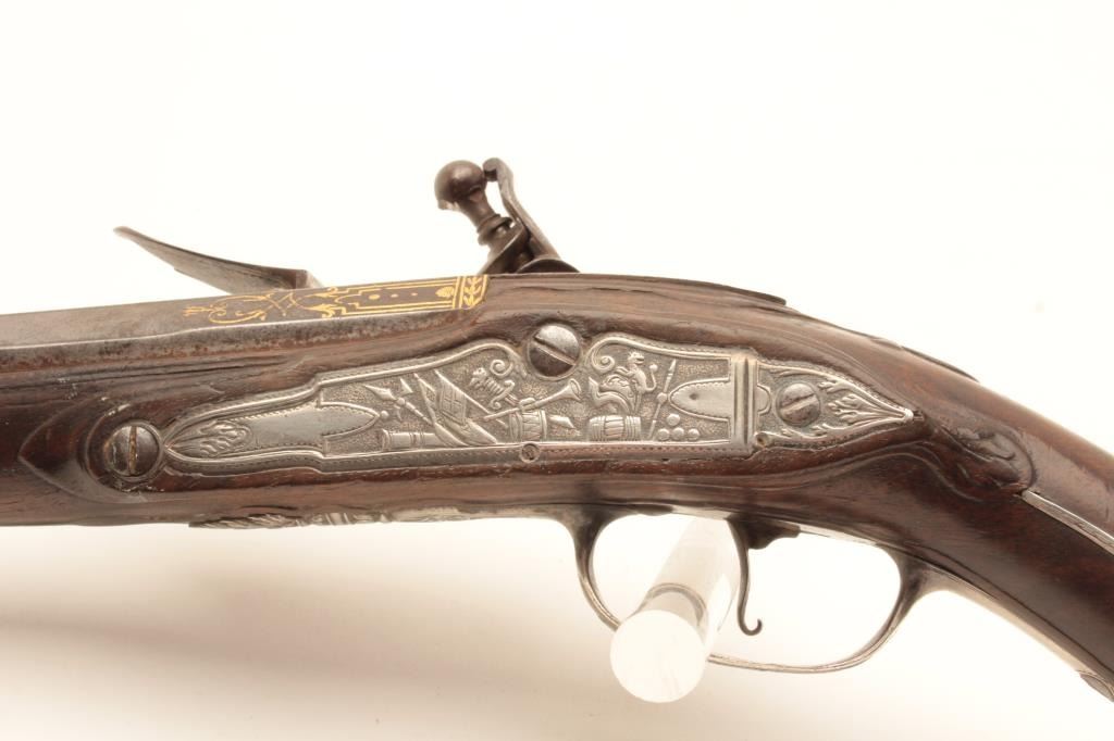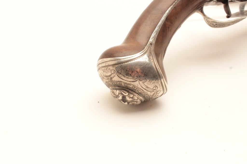 Lot 851 18CA-1 HORSEMANS PISTOLSFine French silver mounted flintlock horseman’s pistol signed “Le Lorain a