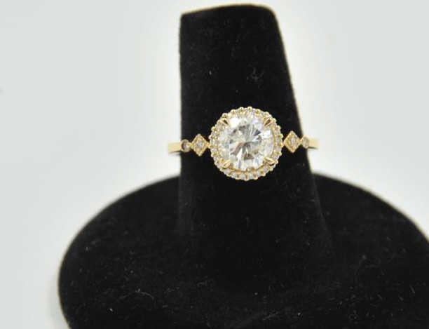18RPS-40 DIAMOND HALO RINGOne 1.55ct round diamond set in a delicate halo ring EST:$3500-7000One 1.55ct round diamond set in a delicate halo ring EST:$3500-7000