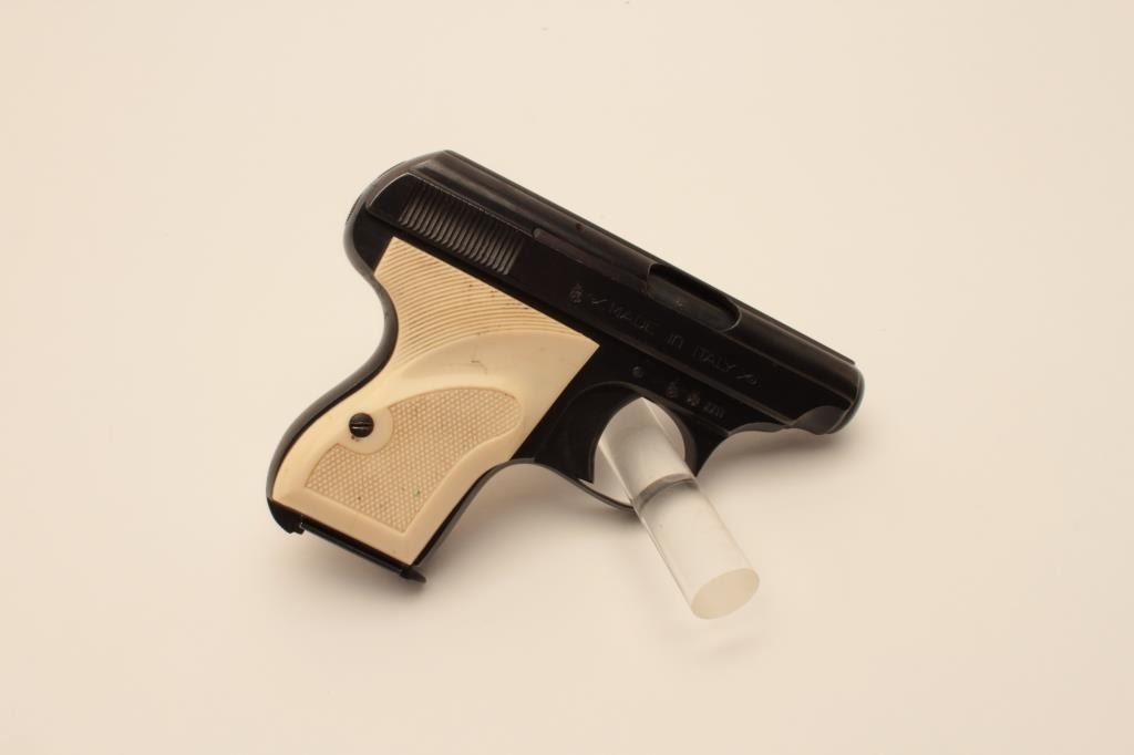 18AO-6 LIBERTY ARMS #131917Liberty Arms Company semi-automatic pistol, .25 caliber, Serial #131917. The pistol is in good overall condition with a 2 ¼” barrel. The pistol is marked, “MADE IN ITALY” and retains the majority of its muted blue finish with some high point edge wear. The checkered plastic grips are in good with only small mars and handling marks. The pistol includes one correct magazine. The bore is good, the action crisp and markings aresharp. Est.: $150-$300. (Modern).Liberty Arms Company semi-automatic pistol, .25 caliber, Serial #131917. The pistol is in good overall condition with a 2 ¼” barrel. The pistol is marked, “MADE IN ITALY” and retains the majority of its muted blue finish with some high point edge wear. The checkered plastic grips are in good with only small mars and handling marks. The pistol includes one correct magazine. The bore is good, the action crisp and markings aresharp. Est.: $150-$300. (Modern).