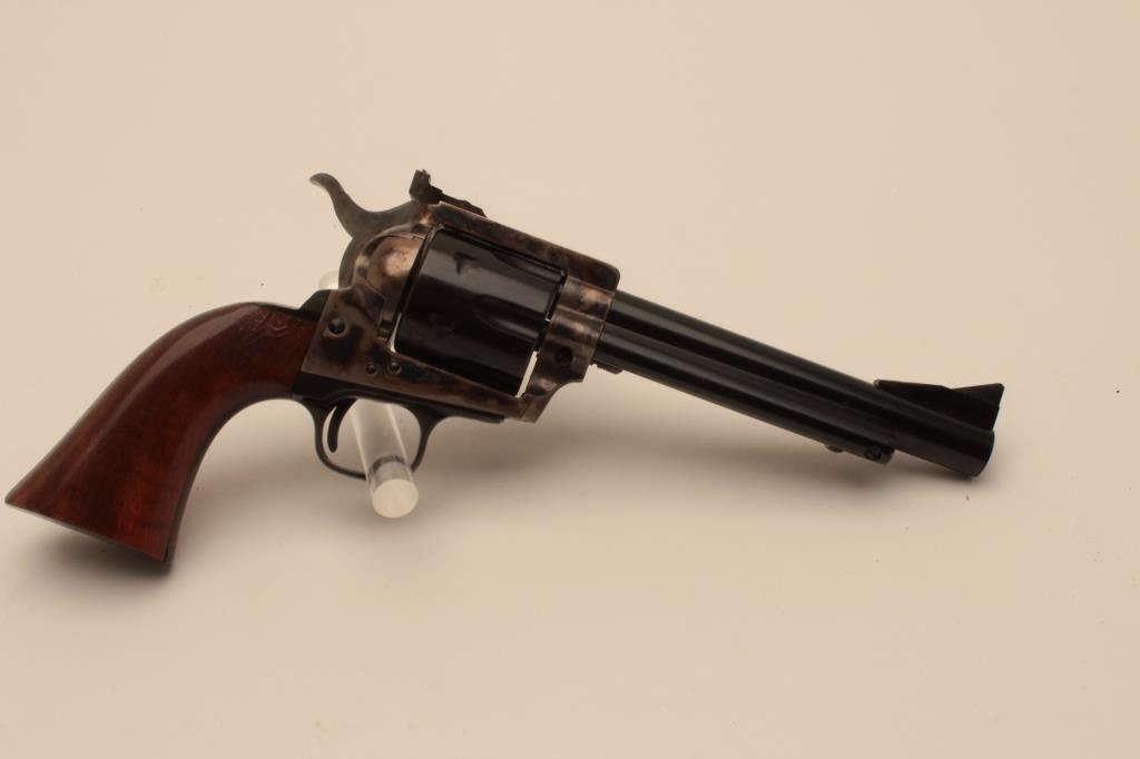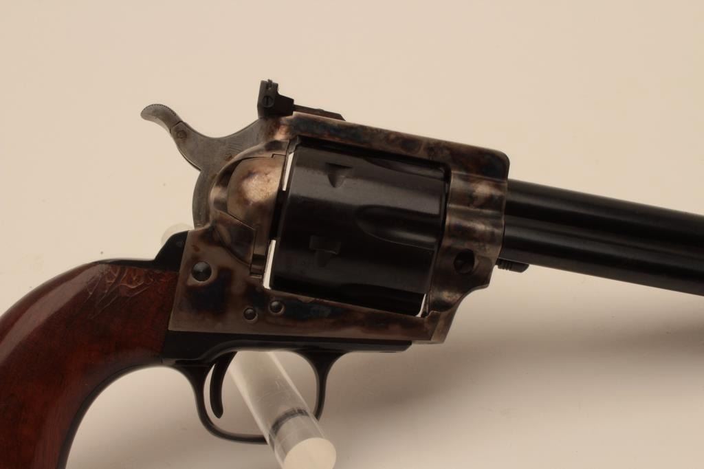 18BM-32 COLT UBERTIColt-Uberti single action revolver, .44 Mag cal., #75945, 6" barrel, blued and color case hardened frame, adjustable sights, safety on hammer with hardwood grips. Scarce Uberti marked "Made for Colt". Revolver isin excellent, as new condition. (Modern /PPT) Est. $500-1000Colt-Uberti single action revolver, .44 Mag cal., #75945, 6" barrel, blued and color case hardened frame, adjustable sights, safety on hammer with hardwood grips. Scarce Uberti marked "Made for Colt". Revolver isin excellent, as new condition. (Modern /PPT) Est. $500-1000