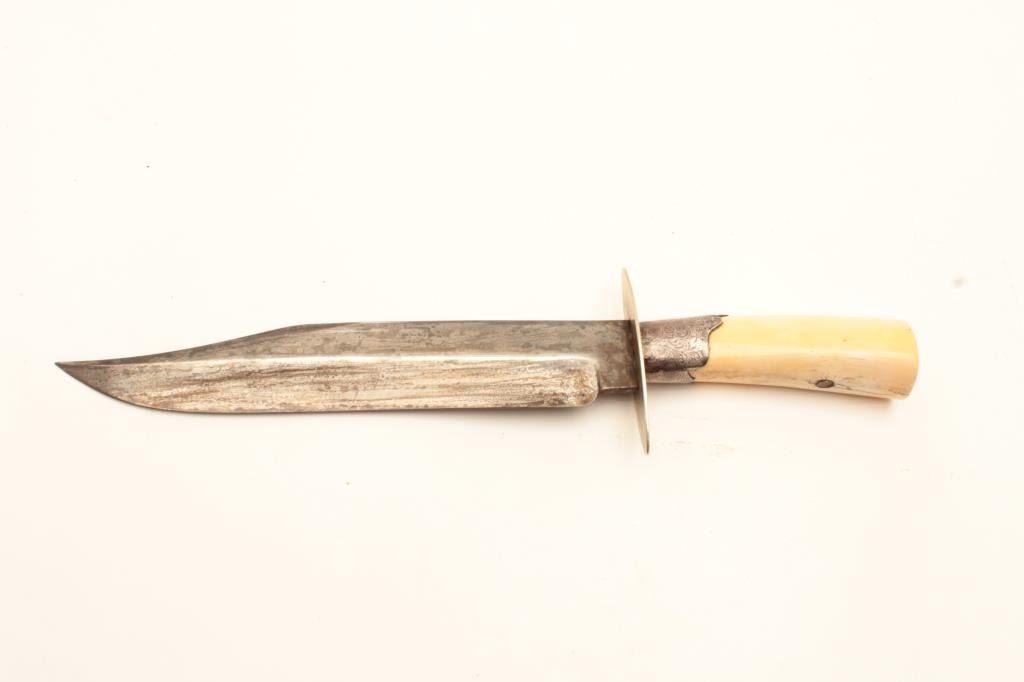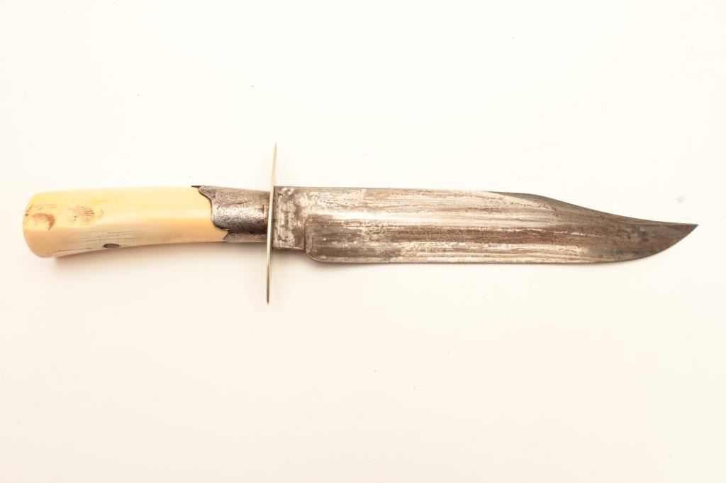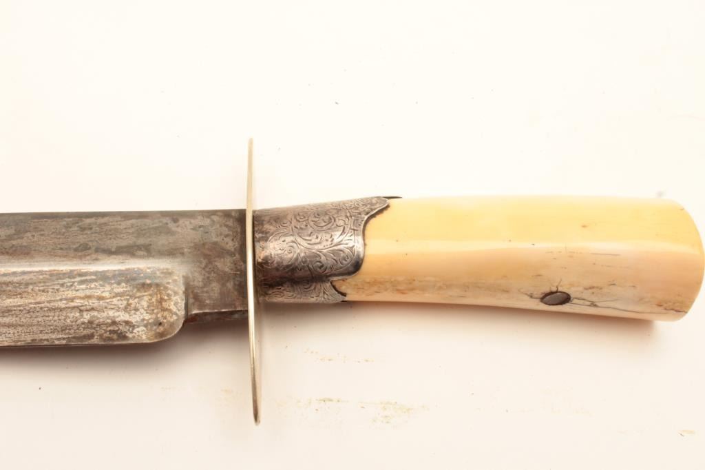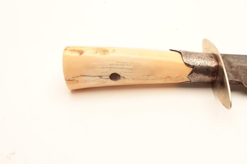Lot 930 18CA-14 CLIPPED POINT BOWIEClipped point bowie knife with marine ivory and engraved silver mount ci