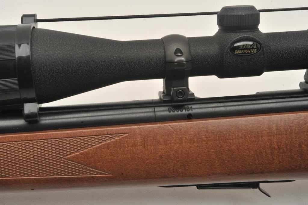 18BE-22 SAVAGE 93R17 #0383161Savage 93R17, #0383161, .17 HMR cal., 20 3/4" bull barrel, with BSA Deerhunter 3-9x40 scope. Rifle is in very good to fine condition, showing some light corrosion on the left side of the receiver that isstarting, which should clean. Bore is excellent, action is crisp. (Modern) Est. $150-300Savage 93R17, #0383161, .17 HMR cal., 20 3/4" bull barrel, with BSA Deerhunter 3-9x40 scope. Rifle is in very good to fine condition, showing some light corrosion on the left side of the receiver that isstarting, which should clean. Bore is excellent, action is crisp. (Modern) Est. $150-300