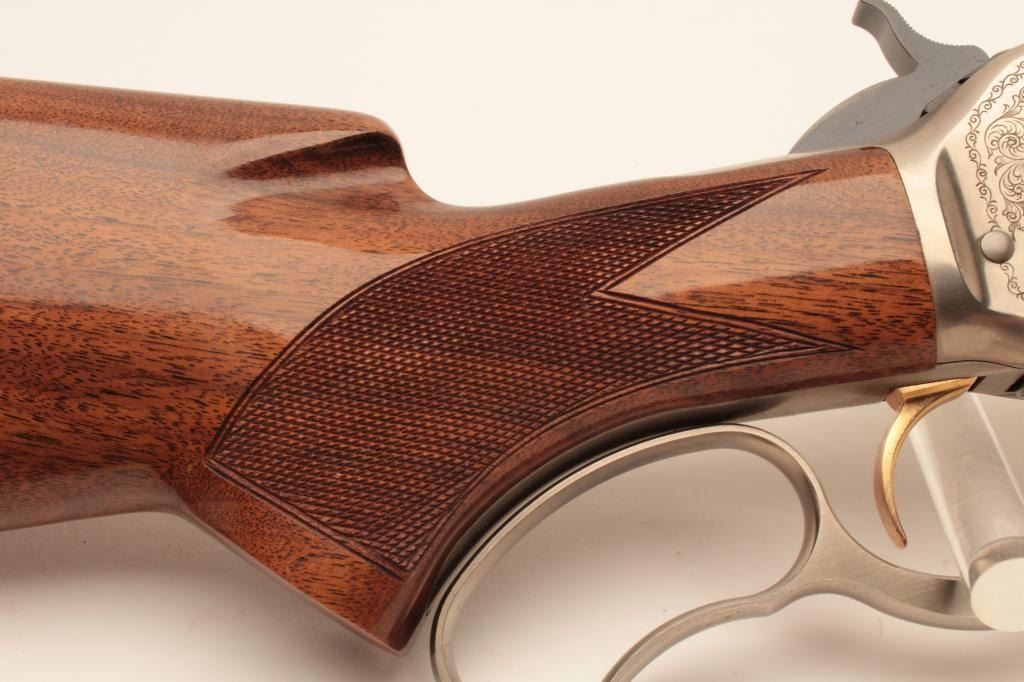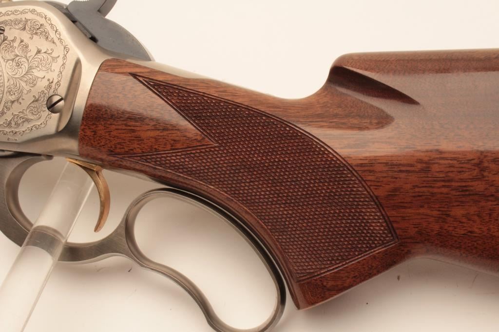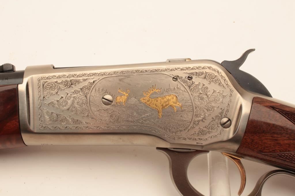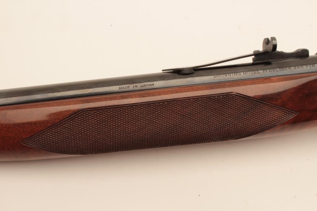 18CC-4 MDL 71 BROWNINGDiscontinued Browning Model 71 Lever Action Carbine in .348 caliber with a 20” barrel, high grade, S/N 00053PR6C7. Excellent to new in box. Few high grade carbines were made. (Modern) Est.: $1400-$2800Discontinued Browning Model 71 Lever Action Carbine in .348 caliber with a 20” barrel, high grade, S/N 00053PR6C7. Excellent to new in box. Few high grade carbines were made. (Modern) Est.: $1400-$2800