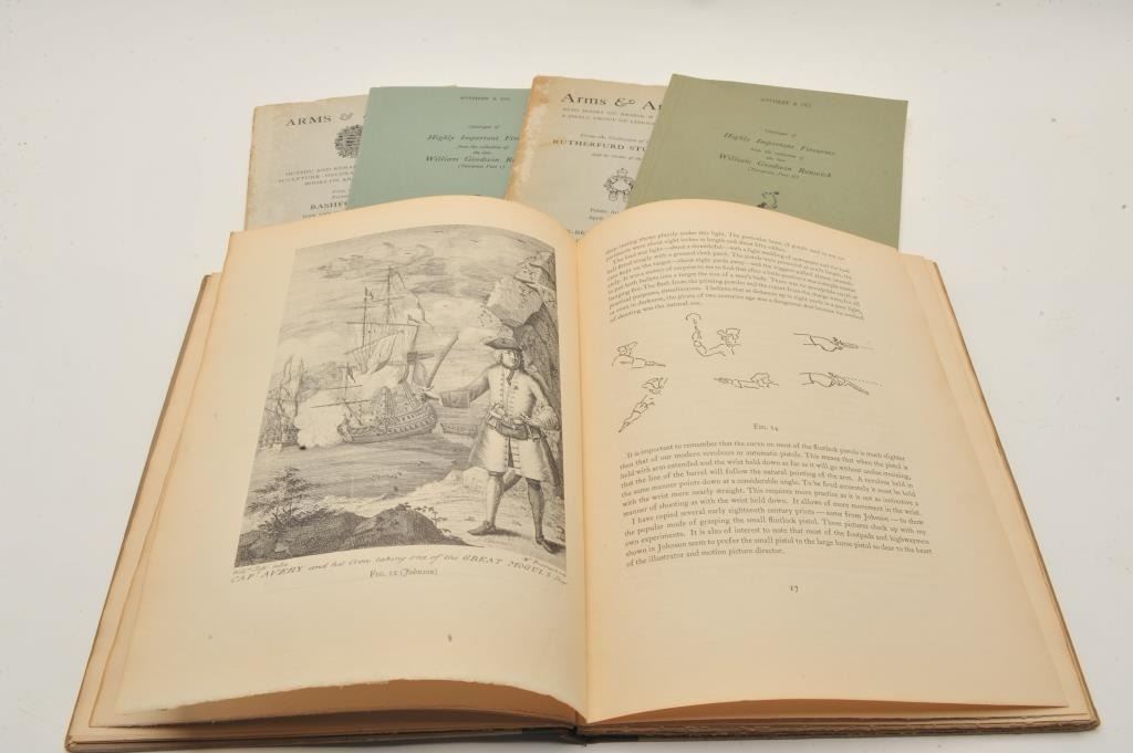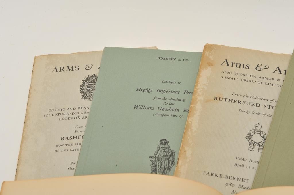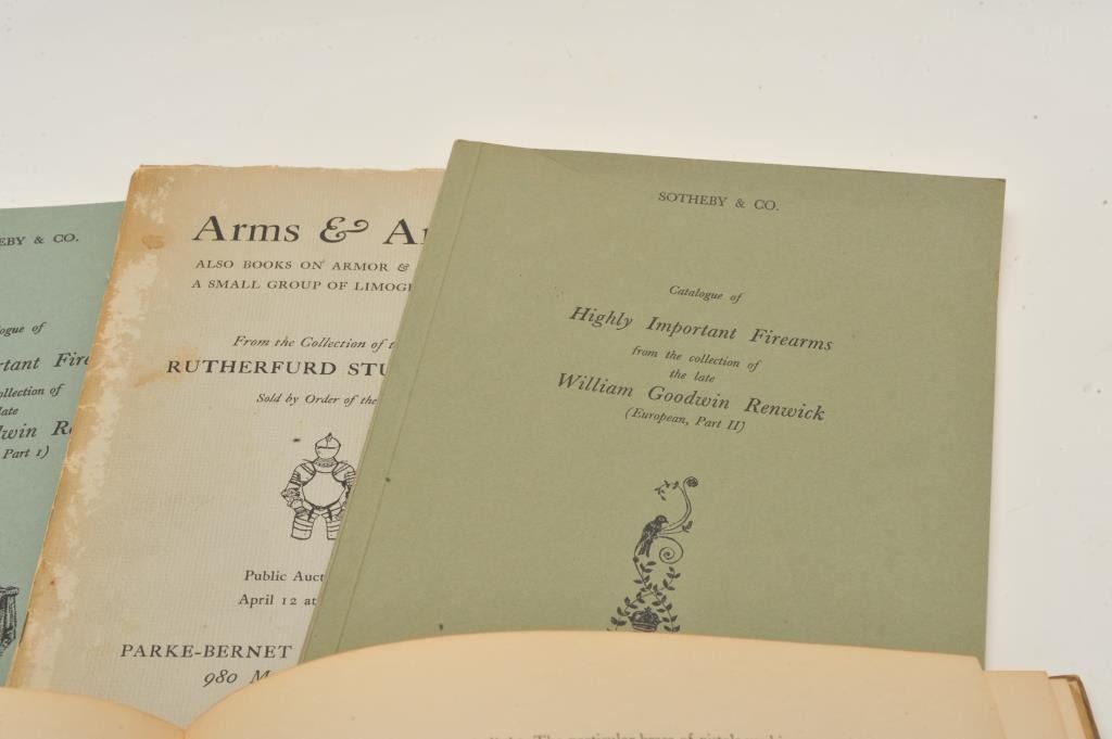 EVE-201 PAMPLETS & BOOKSLot of 5 pamphlets and book for European arms collector as described: 1. A miscellany of arms and armor 1937. Honoring Bashford Dean’s 60th birthday. Good plus condition2. Sotheby catalog of William G. Renwick, Mon; 71, July, 1972. Very good condition. 3. Sotheby catalog of William G. Renwick collection; 21, Nov., 1972. 4. Parke-Benet catalog collection ofRutherford Stuyvesant, New York, 1950. Fair to good condition. 5. Parke-Benet catalog Bashford Dean collection, 1950. Fair to good condition. Est.: $150-$300Lot of 5 pamphlets and book for European arms collector as described: 1. A miscellany of arms and armor 1937. Honoring Bashford Dean’s 60th birthday. Good plus condition2. Sotheby catalog of William G. Renwick, Mon; 71, July, 1972. Very good condition. 3. Sotheby catalog of William G. Renwick collection; 21, Nov., 1972. 4. Parke-Benet catalog collection ofRutherford Stuyvesant, New York, 1950. Fair to good condition. 5. Parke-Benet catalog Bashford Dean collection, 1950. Fair to good condition. Est.: $150-$300