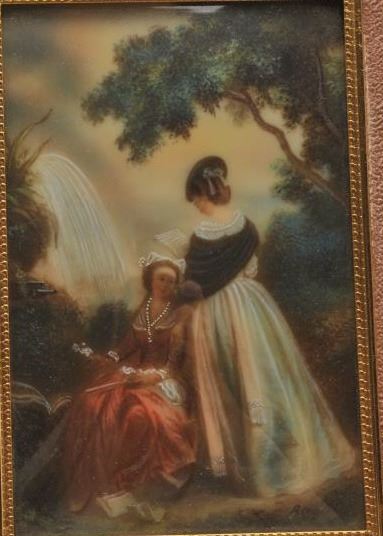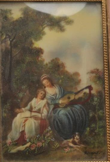 18CA-339 2 MINIATURE PAINTINGSLot of 2 miniature paintings in ornate frames. Signed lower right “Renoir” and illegible possibly Serant. Measures 5” x 3 ½”. The frames measure 10 ½” x 9”. The frames are good with minor cracking but impressiveand artwork is well done. Est.: $500-$1000Lot of 2 miniature paintings in ornate frames. Signed lower right “Renoir” and illegible possibly Serant. Measures 5” x 3 ½”. The frames measure 10 ½” x 9”. The frames are good with minor cracking but impressiveand artwork is well done. Est.: $500-$1000